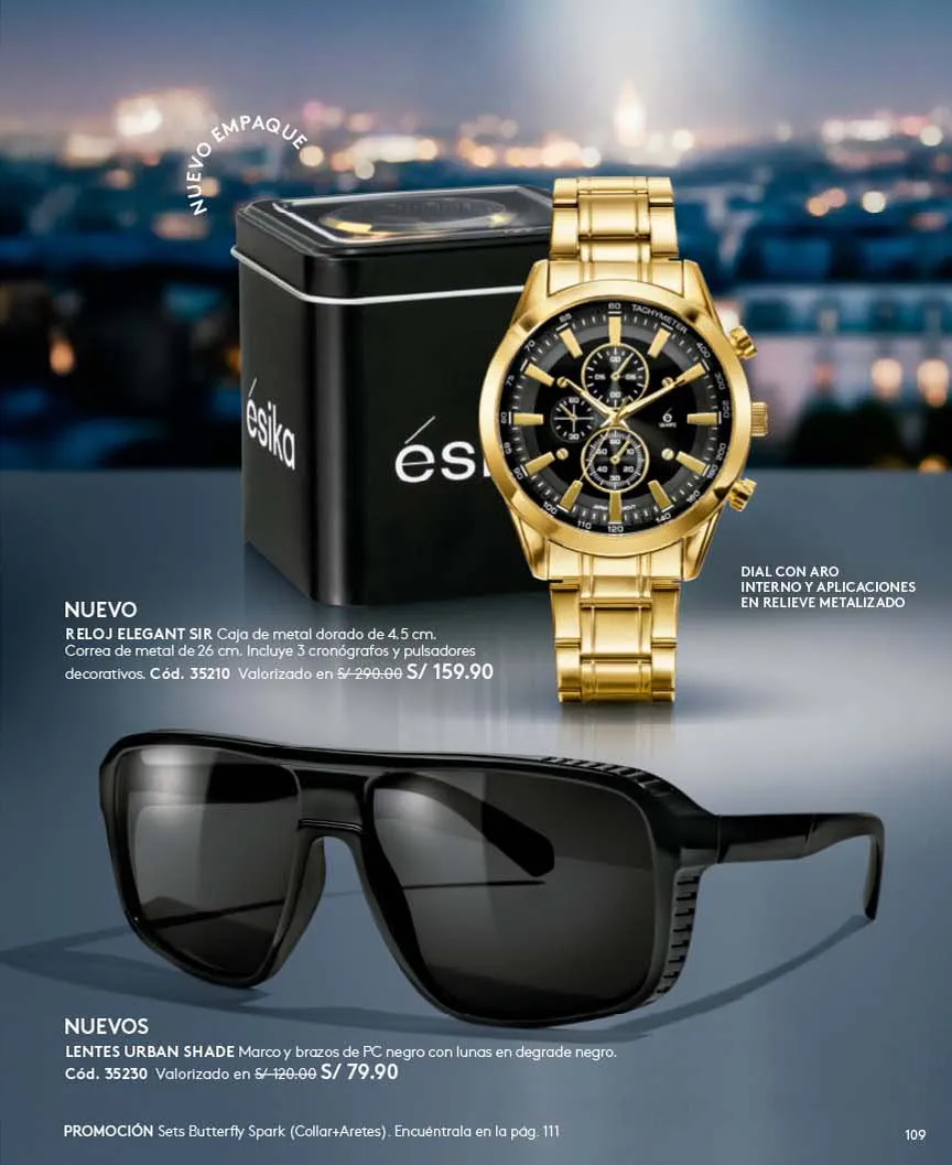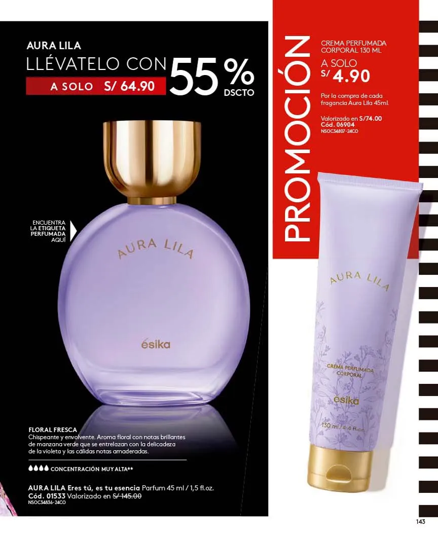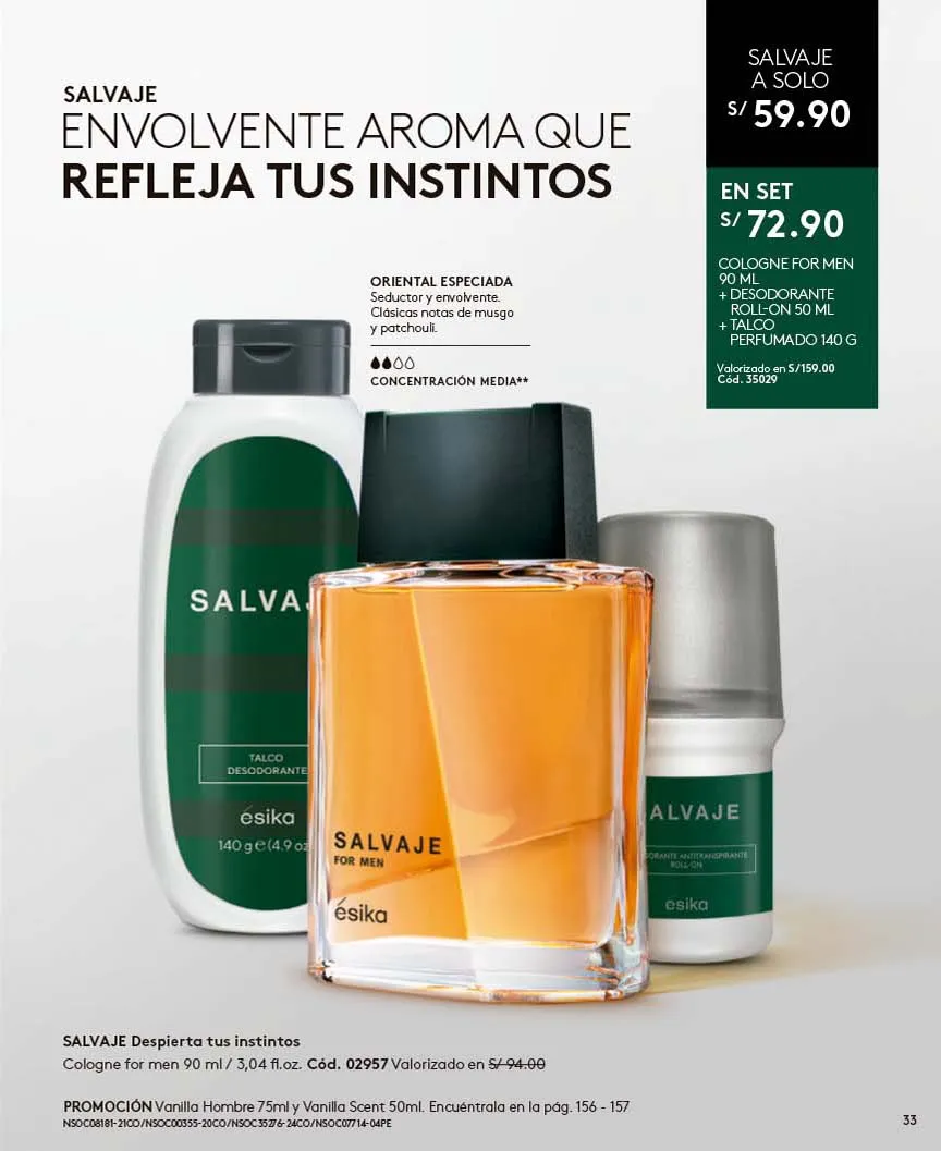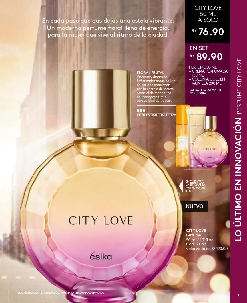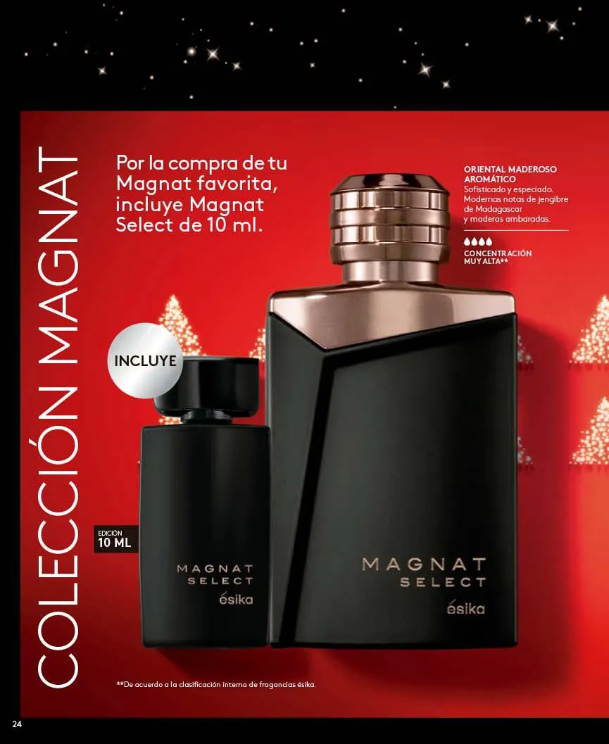 - El regalo que todas queremos para navidad lo tiene Ésika y es el exclusivo Set Imágenes Ésika, Incluye Perfume 50ml Con aroma Floral: Elegante y clásica, Notas de flores blancas ylang-ylang y Jazmín + Loción perfumada 150ml + Talco Perfumado 140g + Bolsa. Pag.9.
