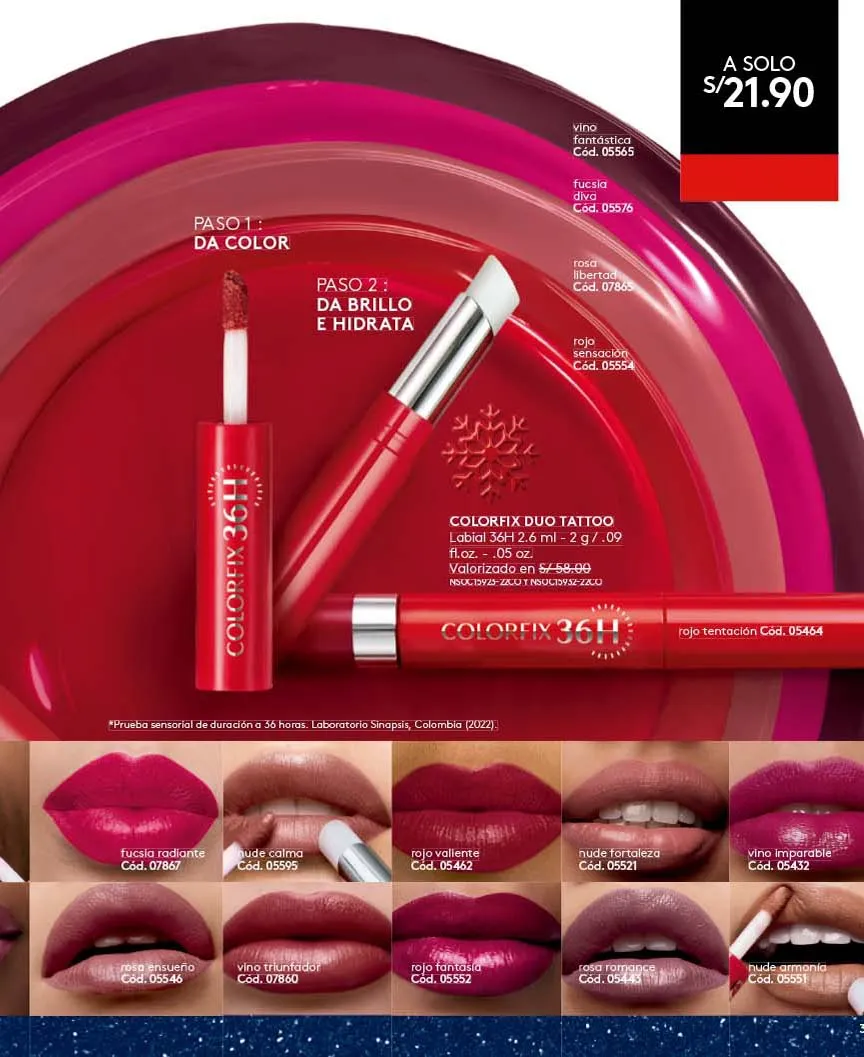 - El nuevo set Red Power incluye: Parfum 50ml Fragancia Chypre Frutal radiante y adictiva, néctar de groselia negra que se fusiona con el femenino absoluto de flor e inmortelle + Colorfix Ultimate Volume mascara tono negro + Colorfix labial liquid Tattoo tono pimienta caliente + caja. Pag.7.