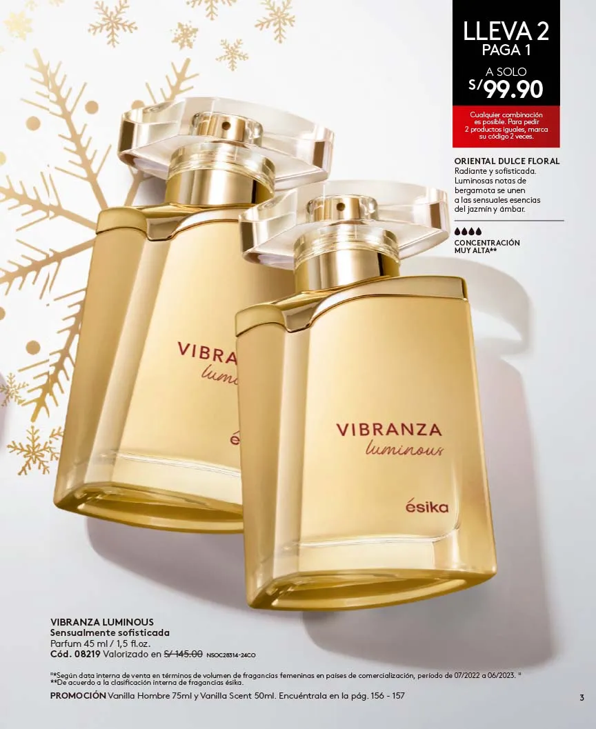 - Prueba el preferido por miles de mujeres en el mundo: Vibranza Edicion Limitadam, Perfume 45ml, con aroma oriental dulce: Cálida e intensa, irresistibles notas de orquídea de vainilla y adictiva flor de café con alta concentración. Pag.5.