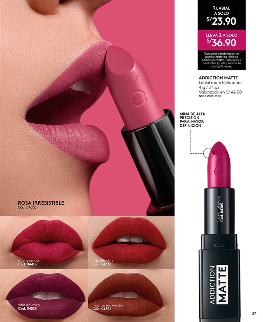 - Intensidad en tu boca con el Labial Color HD Velvet, Labial mate aterciopelado de 4g. Pag 9.