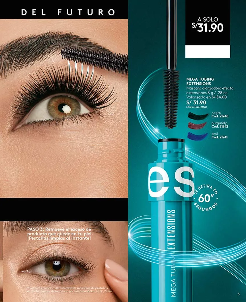 - Cautiva a todos con tu mirada y la ayuda de Mega Multi Benefit, Máscara multibeneficios a prueba de agua de 8g. Pag 13.