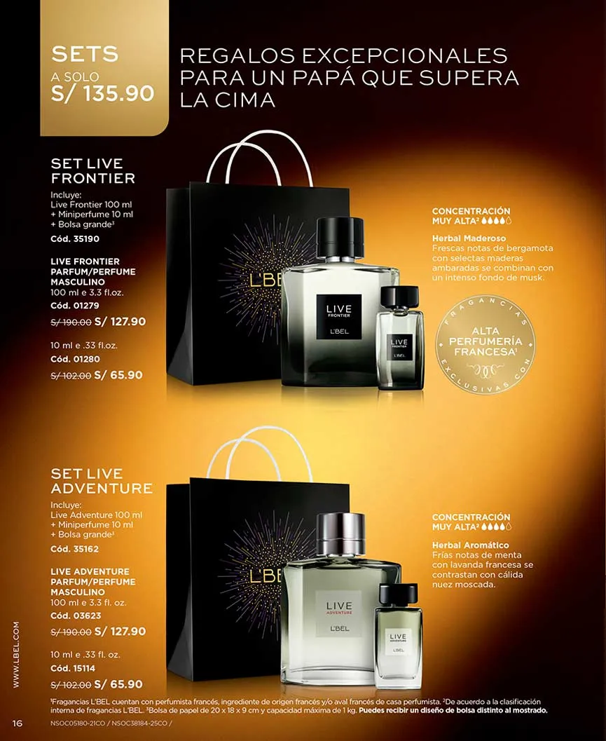 - Set Live Adventure compuesto por: Live Adventure Parfum de 100ml fragancia herbal aromática de concentración muy alta + Live Adventure mini perfume de 10ml + bolsa grande.