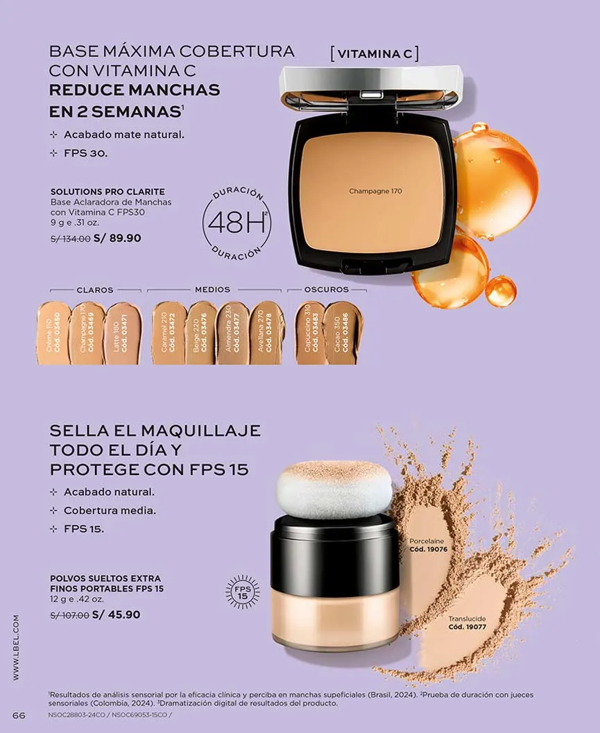 - Base aclaradora de manchas con FPS 30 Claritè de 9g. Está disponible en 5 tonos y viene con 50% de descuento.