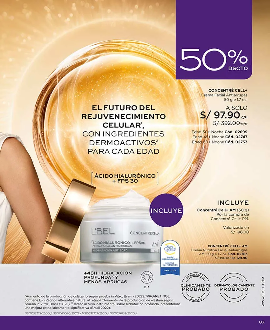 - Nueva Concentré Total de 50g. Hidratante en gel que proporciona 4 veces más hidratación con prebióticos y ácido hialurónico además por la compra de este producto te llevas gratis el labial líquido Infini de 7g con ácido hialurónico tono Rouge.