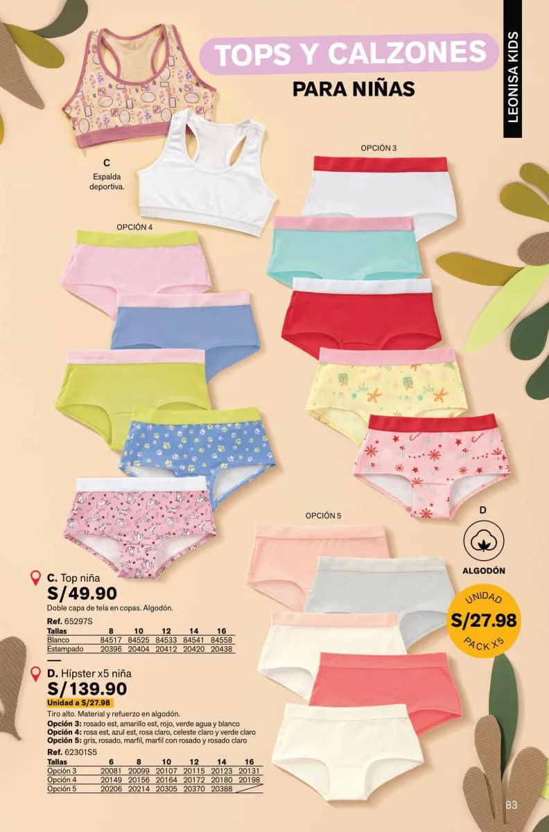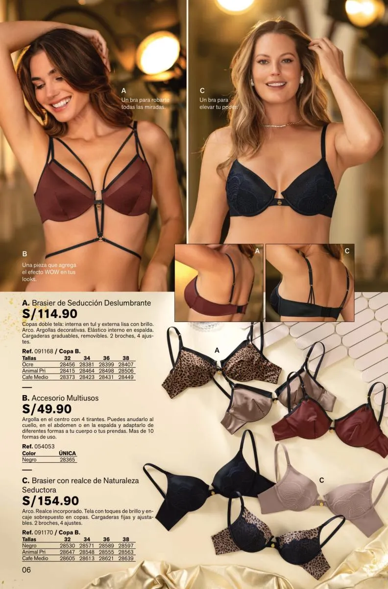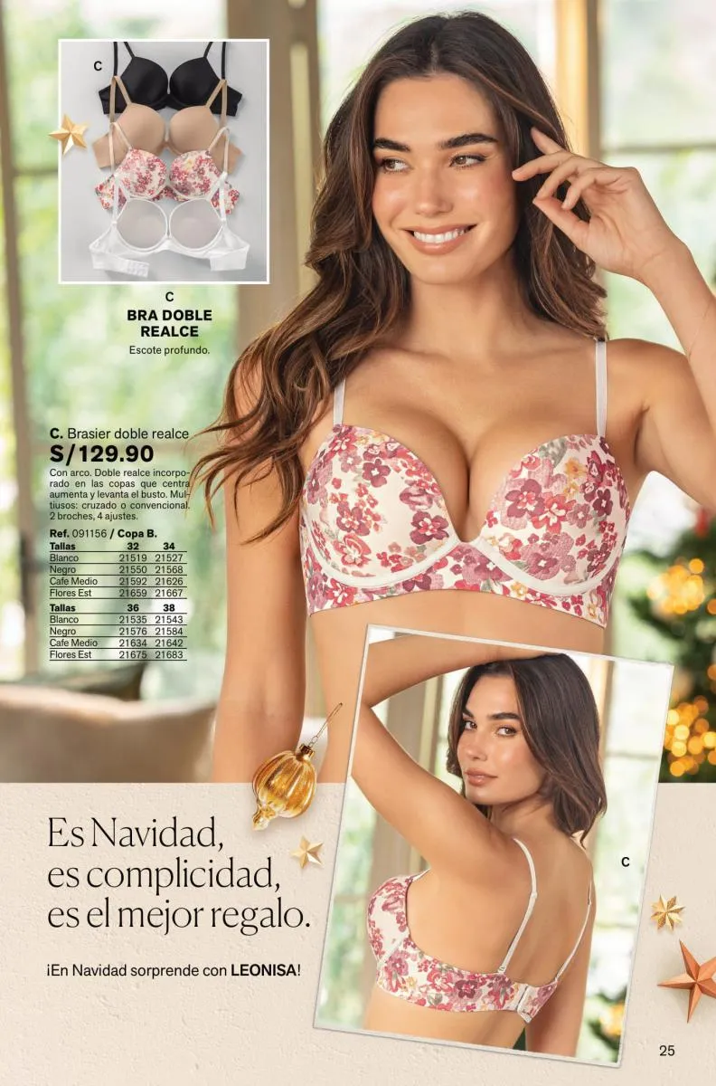 - La lencería más femenina y delicada la tienes en esta catálogo Leonisa campaña 18 2025: los bra Wow o Sexy Essensial (Pág. 7), los bustier Sexy Support (Pág. 17) o los calzones Hipster o Tanga para combinar (Pág. 24).