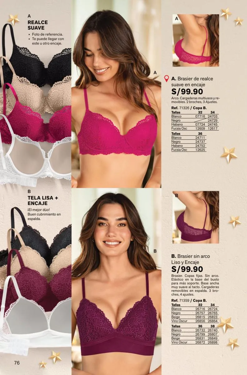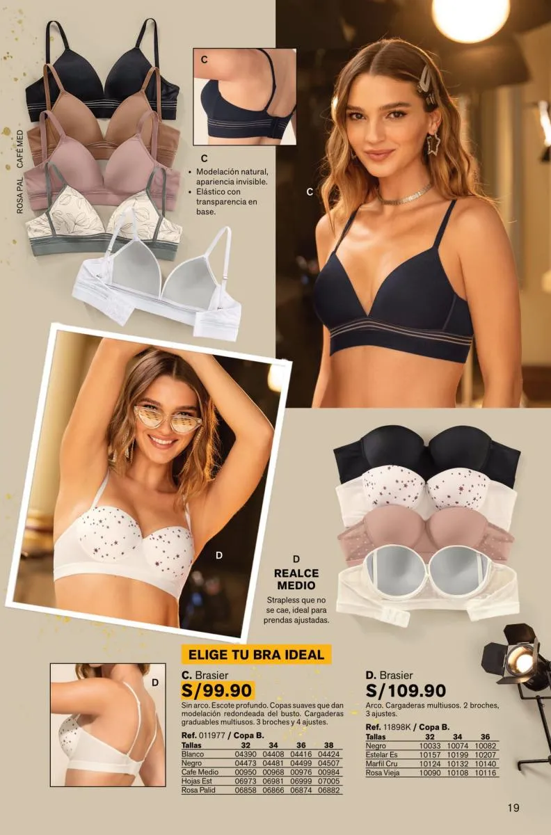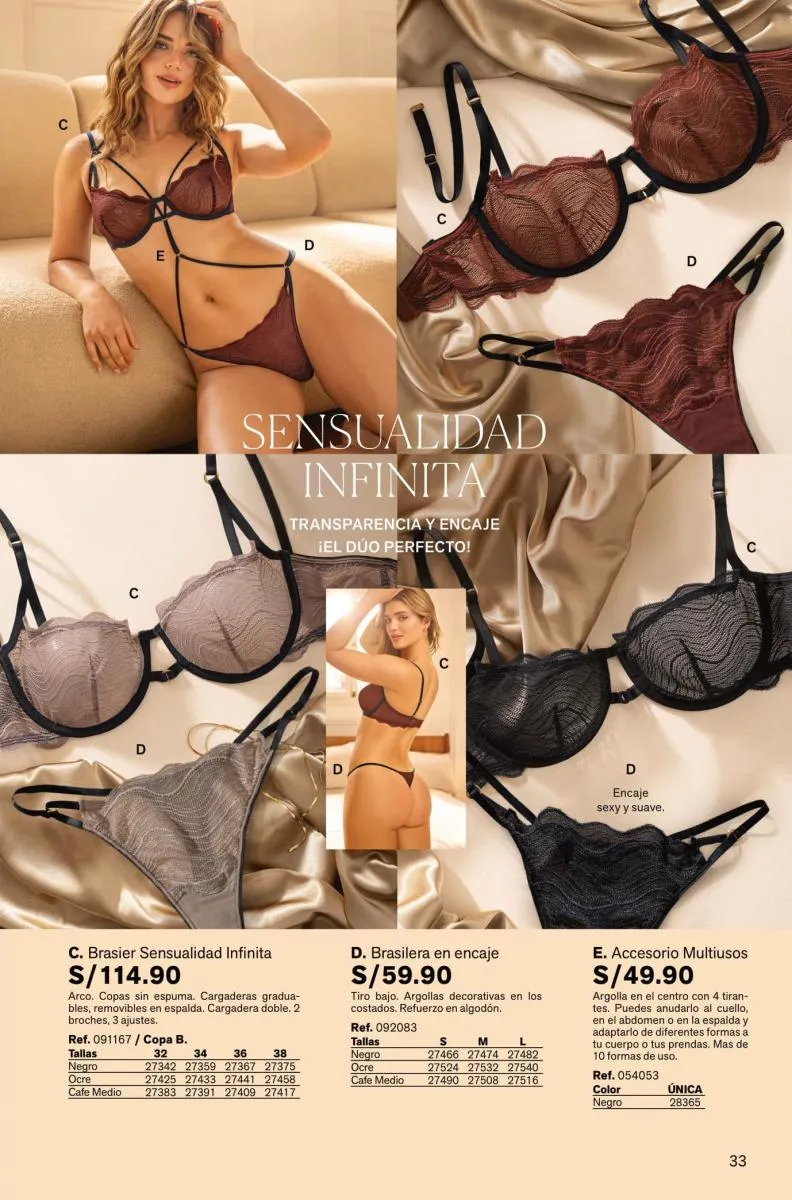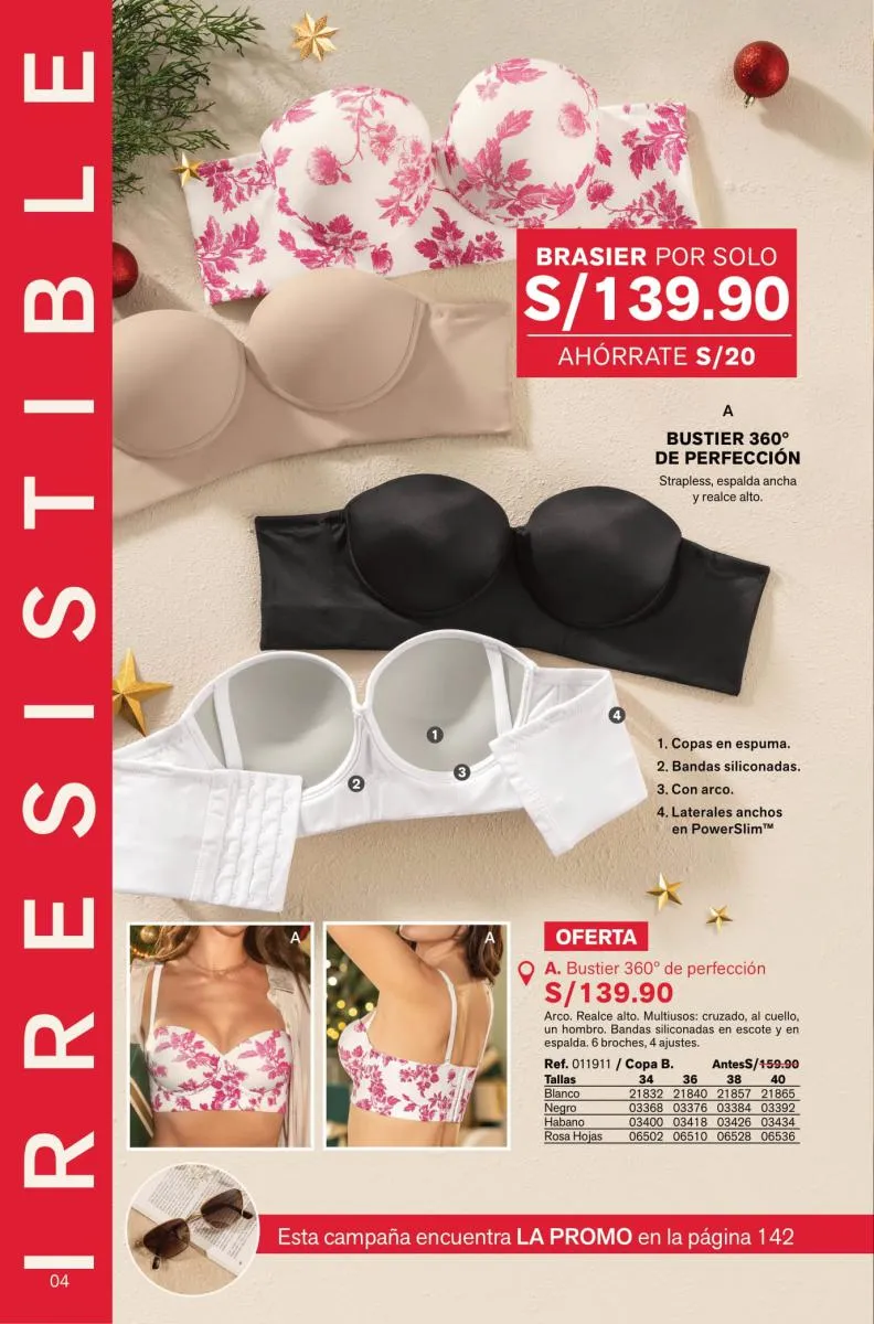 - La lencería más femenina y delicada la tienes en esta catálogo Leonisa campaña 18 2025: los bra Wow o Sexy Essensial (Pág. 7), los bustier Sexy Support (Pág. 17) o los calzones Hipster o Tanga para combinar (Pág. 24).
