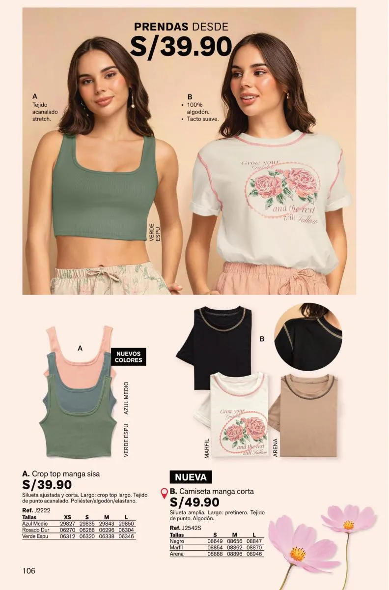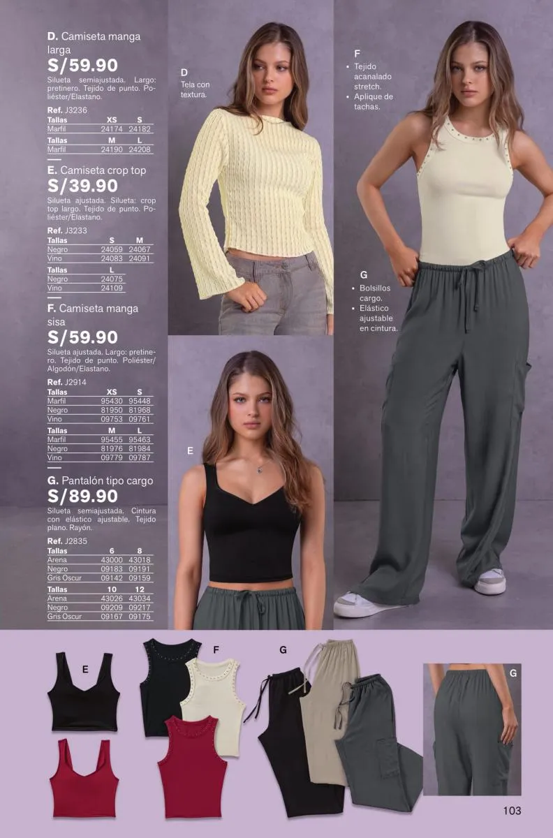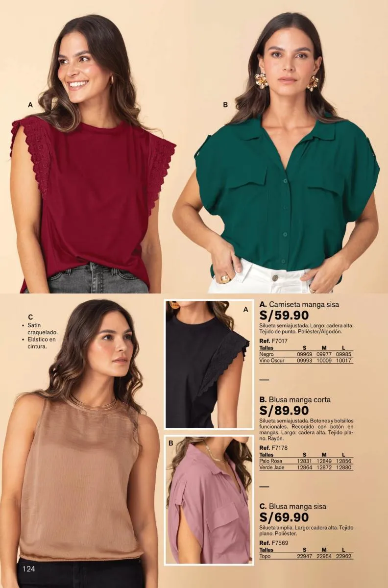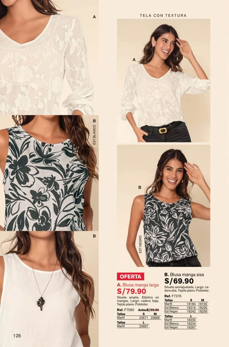 Hay más en esta categoría para ti: camisetas de manga largo, corta o tiritas, blusas de colores neutros de manga larga o la oferta de blusas estampadas. Puedes revisar la variedad de estas prendas desde la página 110.