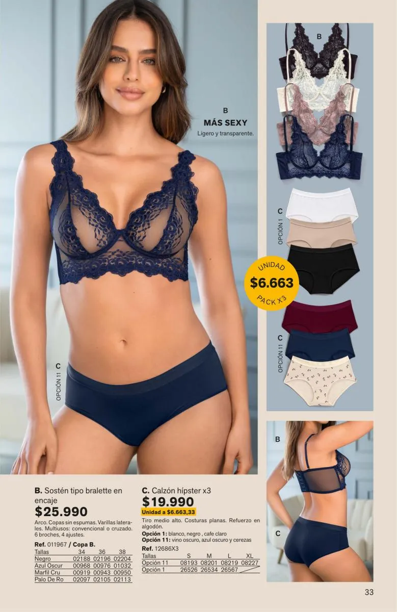 - Conjuntos de brasier y calzones clásicos con encaje. Una pieza fabulosa para usar por su comodidad y presencia.