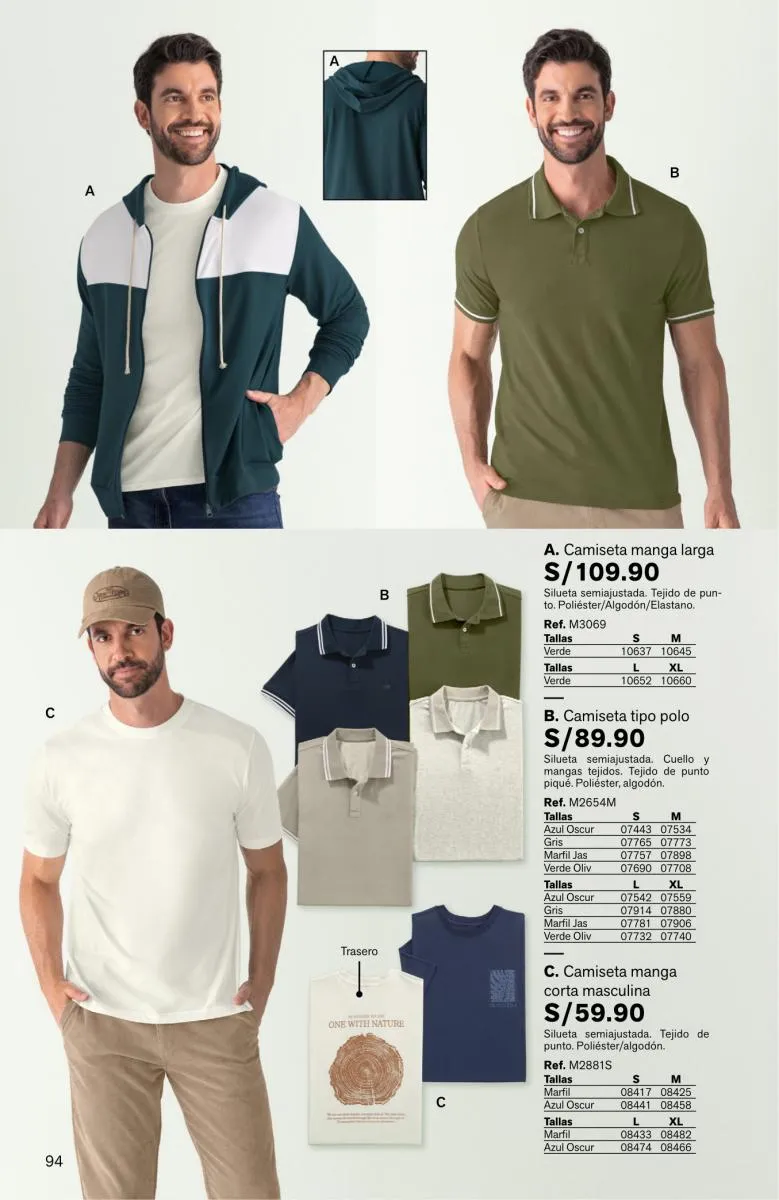 - Camisetas abiertas manga larga.