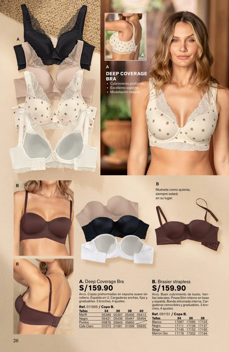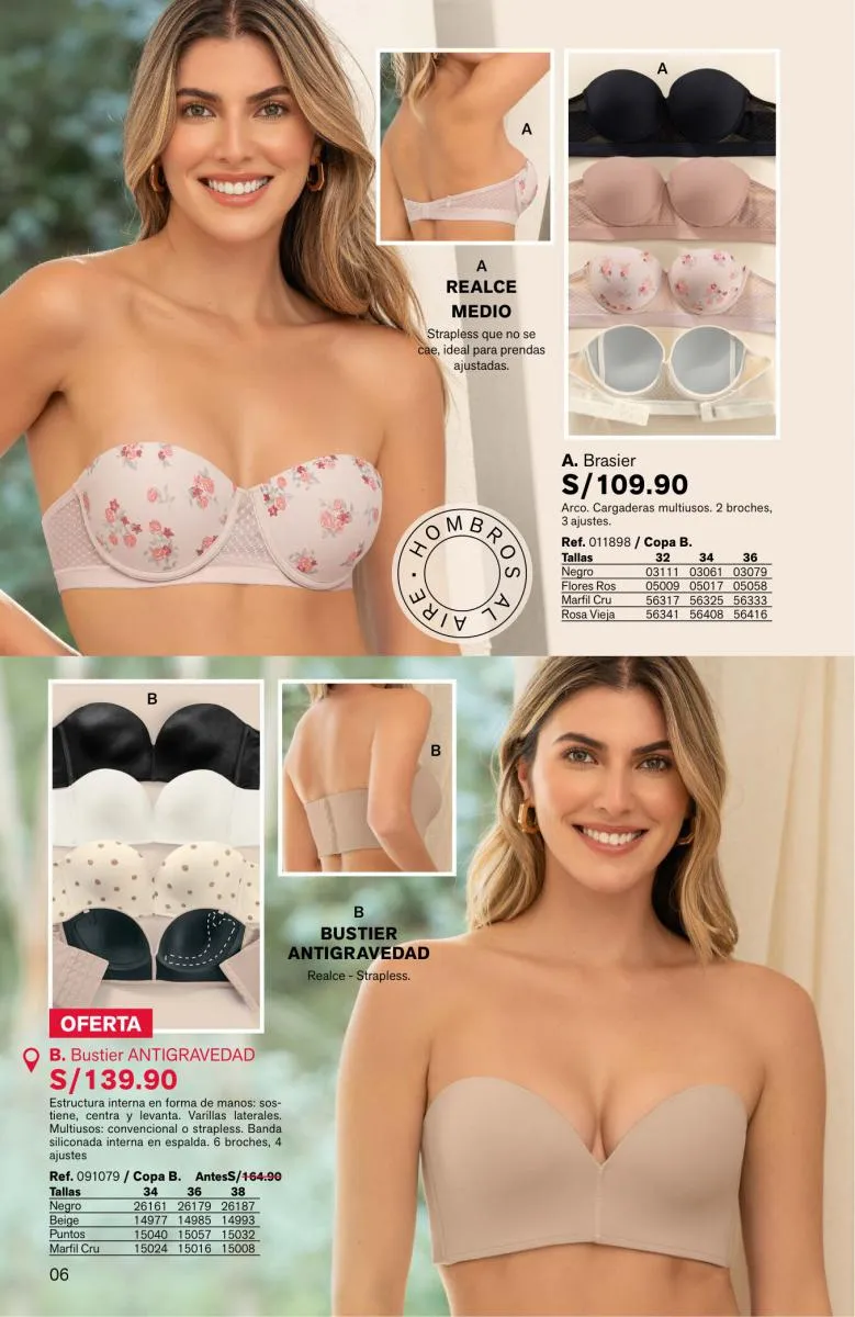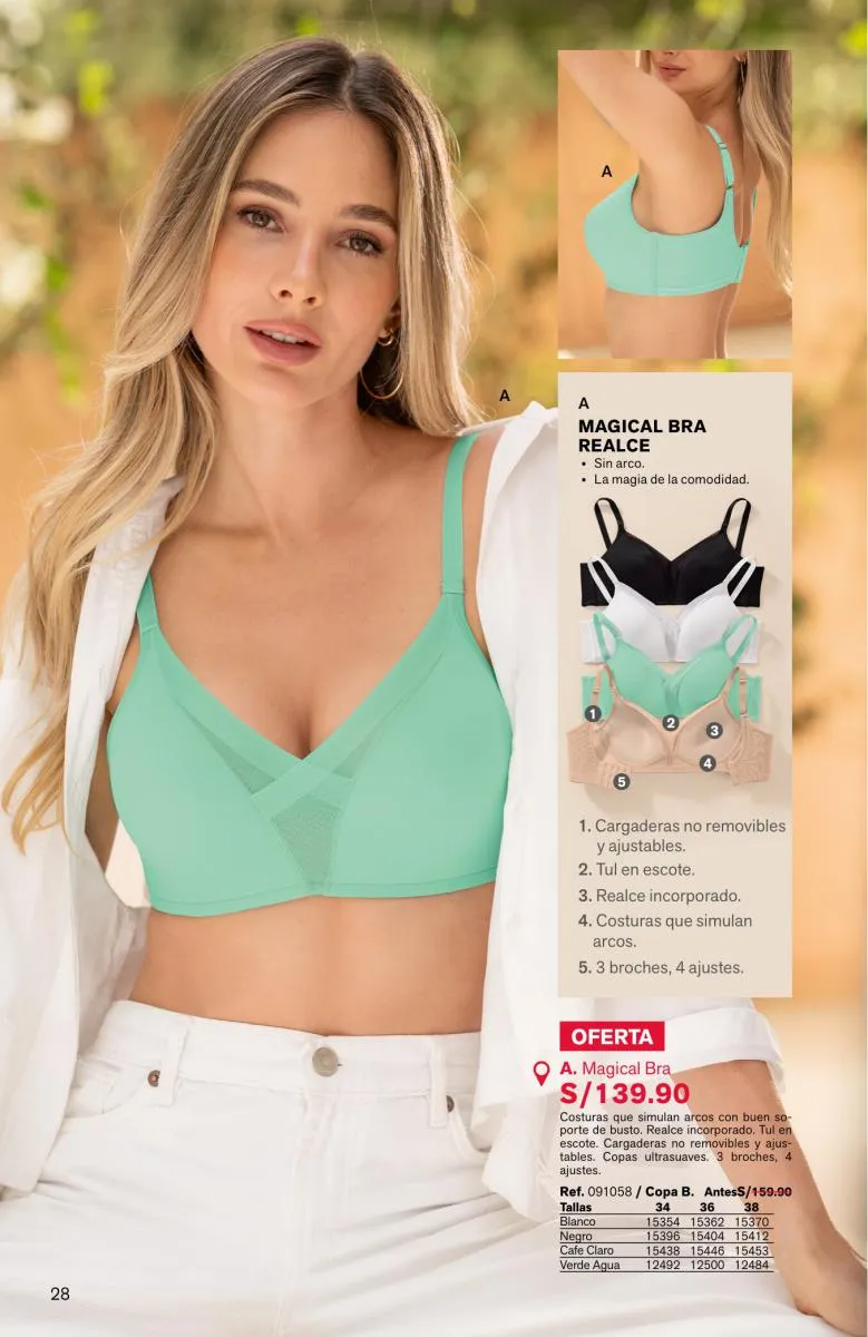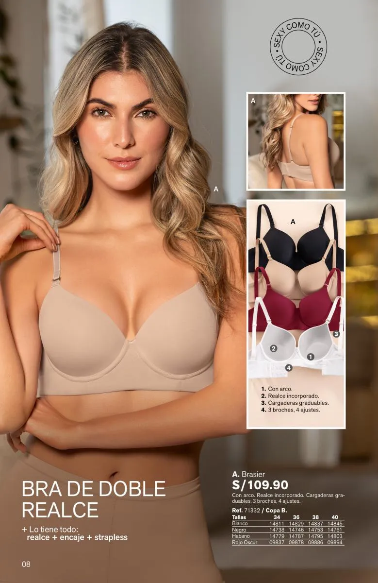 - La página 4 muestra el modelo Magic Up pero de estilo strapples.