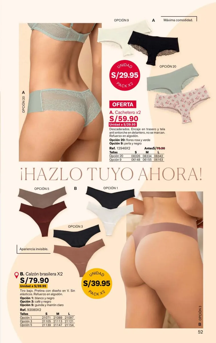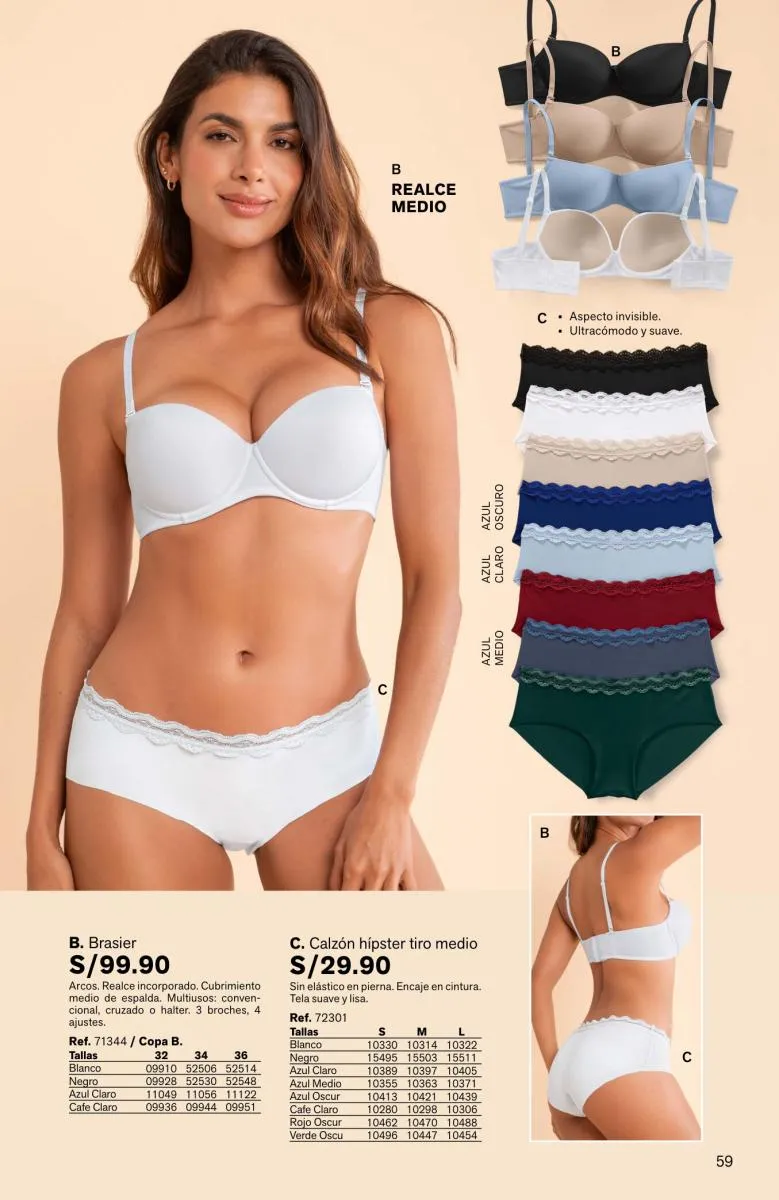 Como ves hay mucho en brasieres y eso sin mencionar los diferentes modelos de calzones que puedes llevar en conjunto, individual o en packs de 3 unidades.