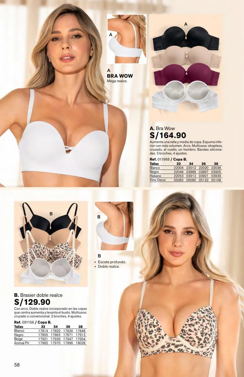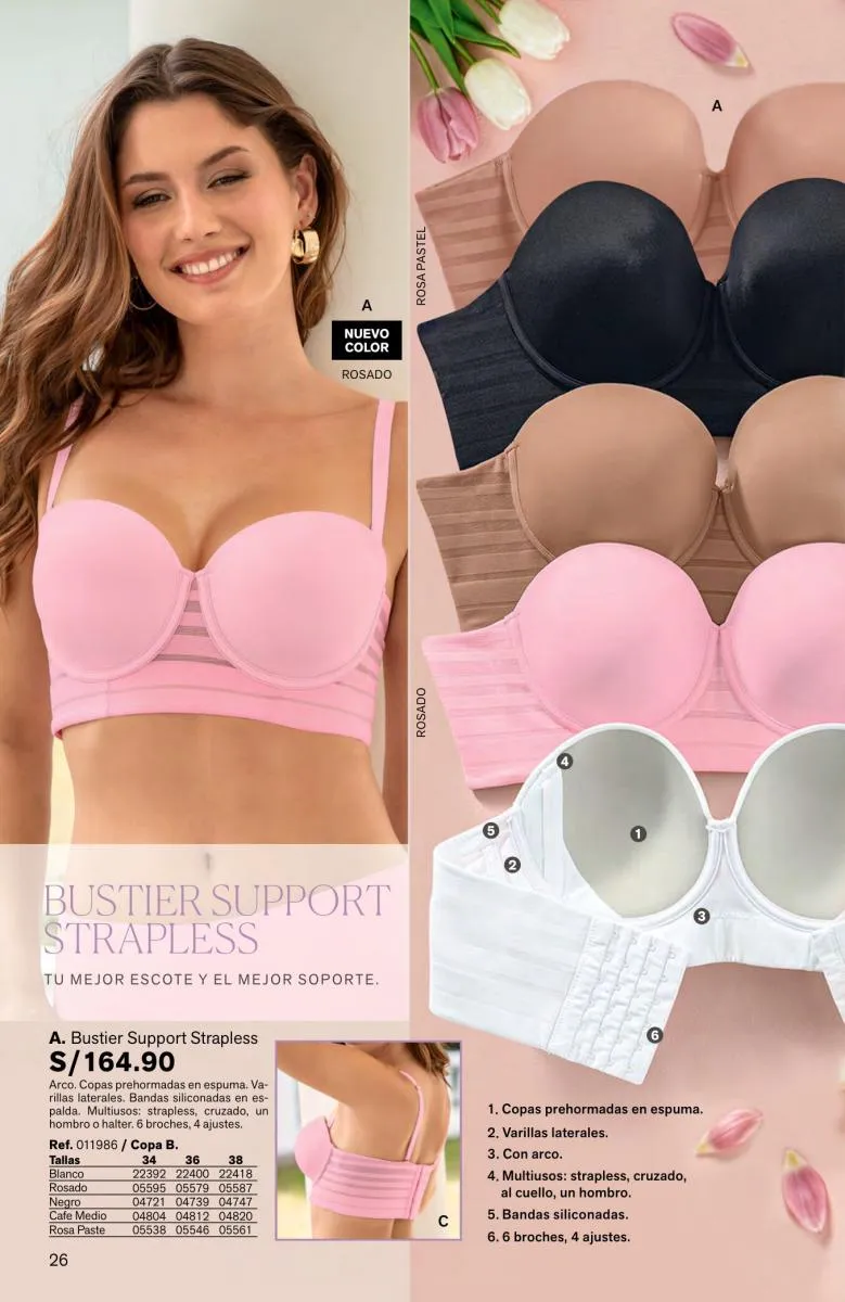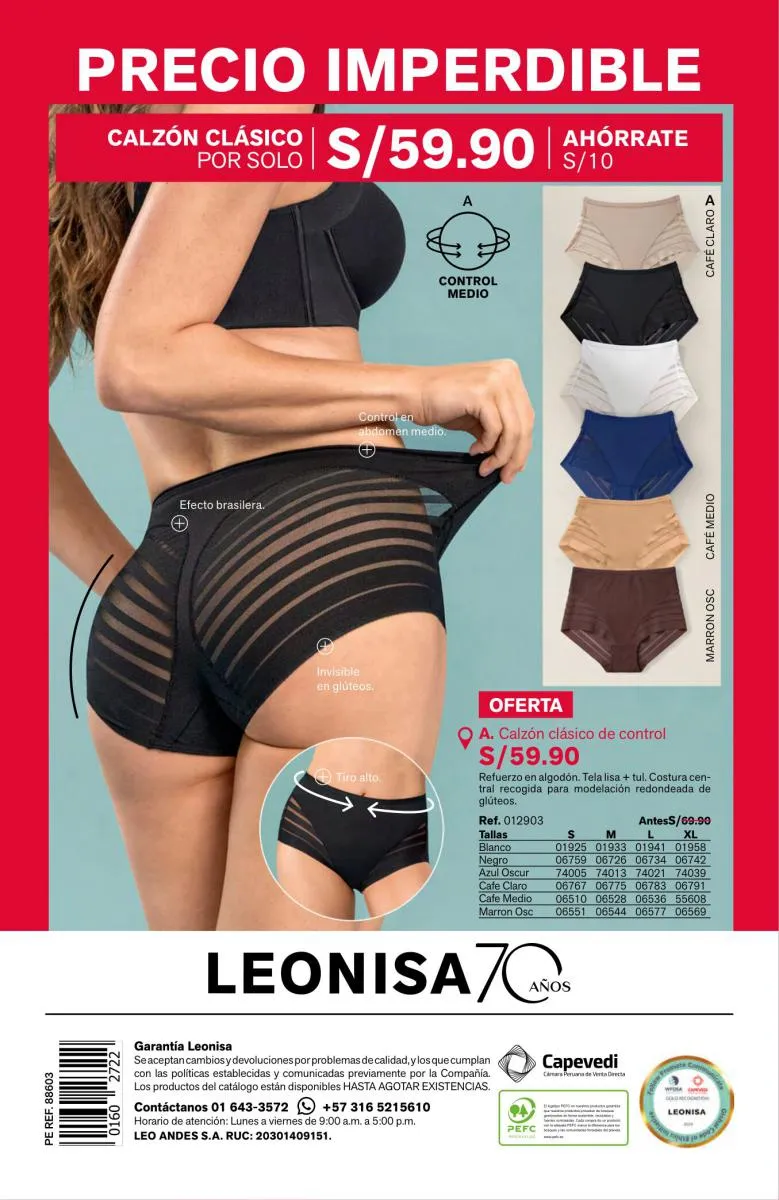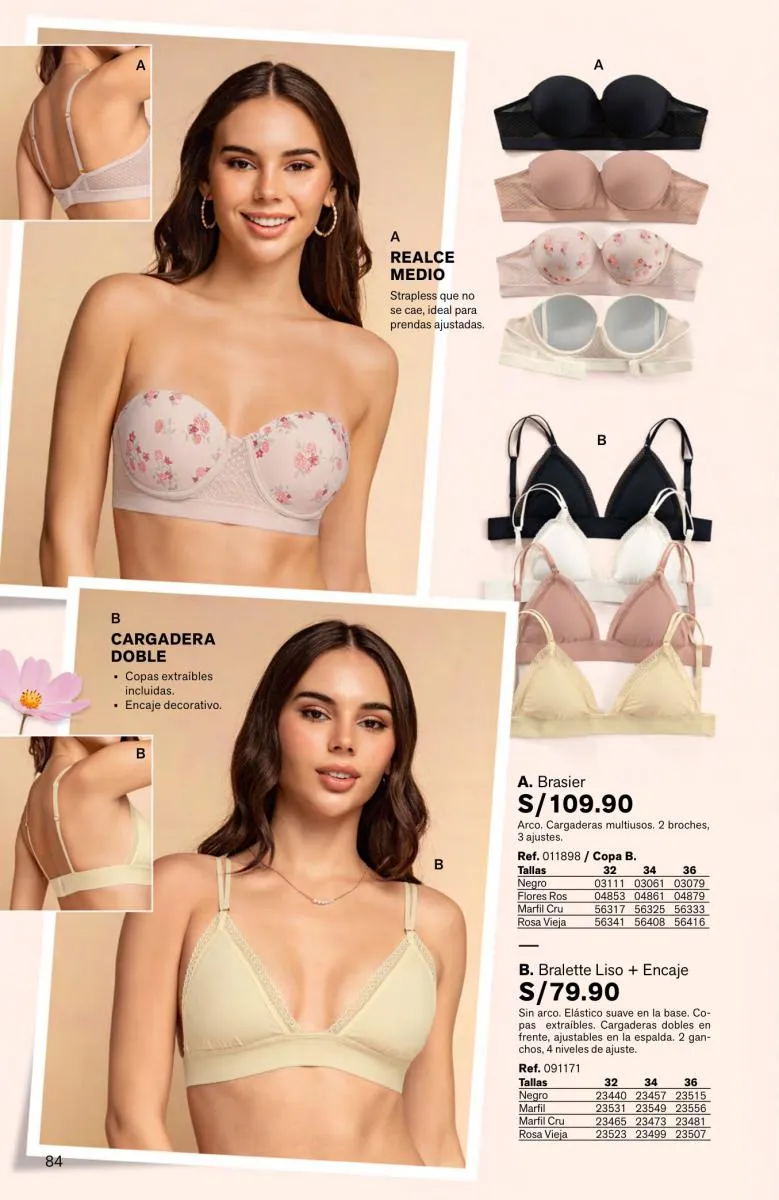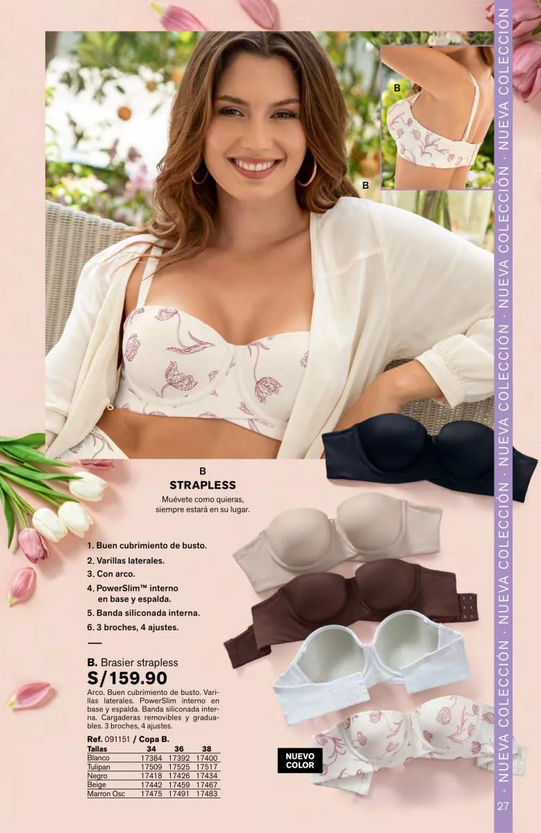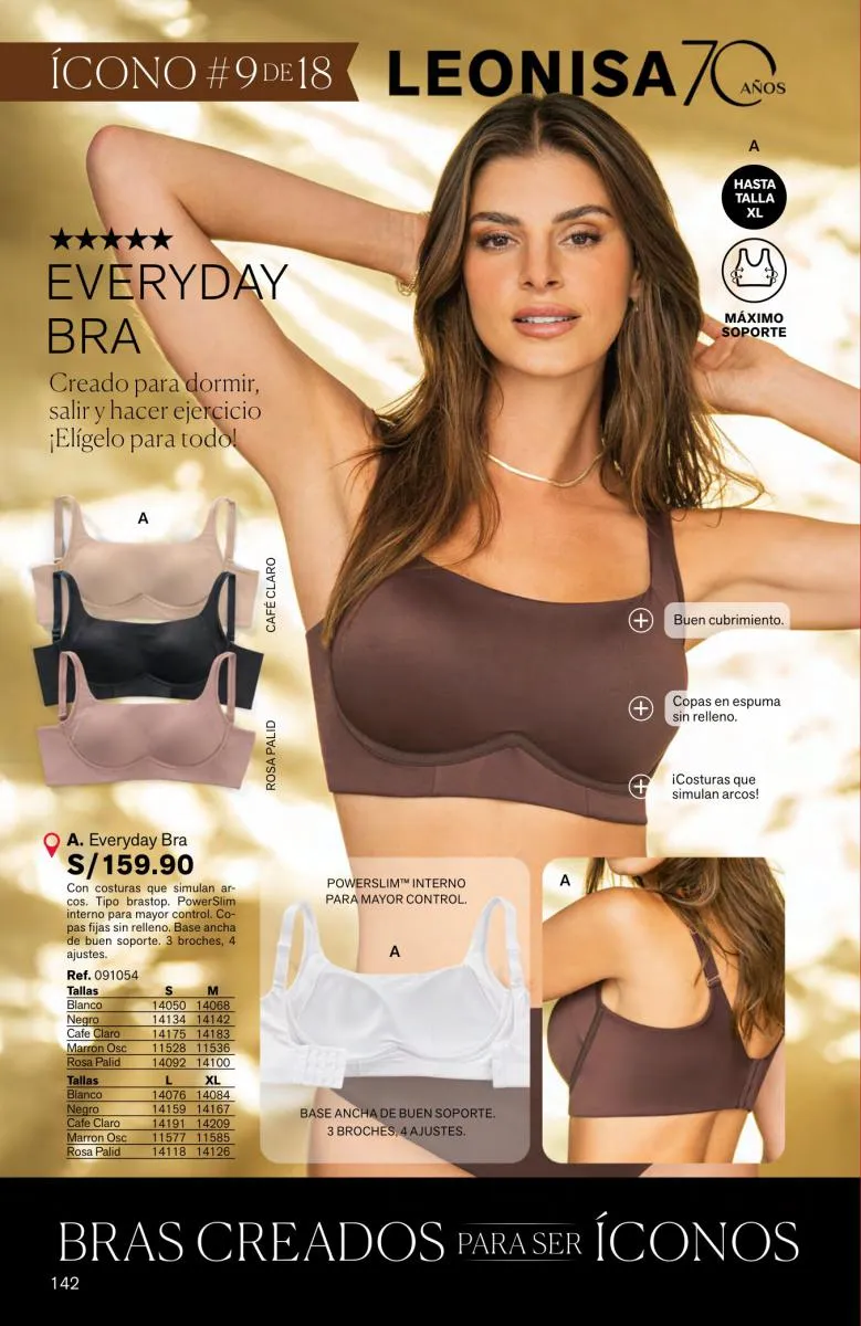 Como es costumbre, la marca Leonisa no deja por fuera las prendas de ropa interior y exterior para dama. Desde la página 20 de este catálogo Leonisa 9 2026 Perú puedes descubrir las novedades de brasieres clásicos, con encaje, strapples, antigravedad y más para ti.
