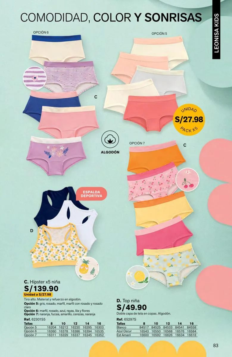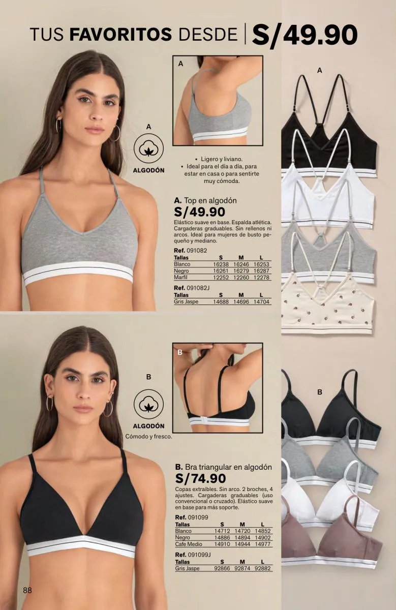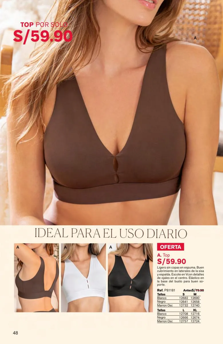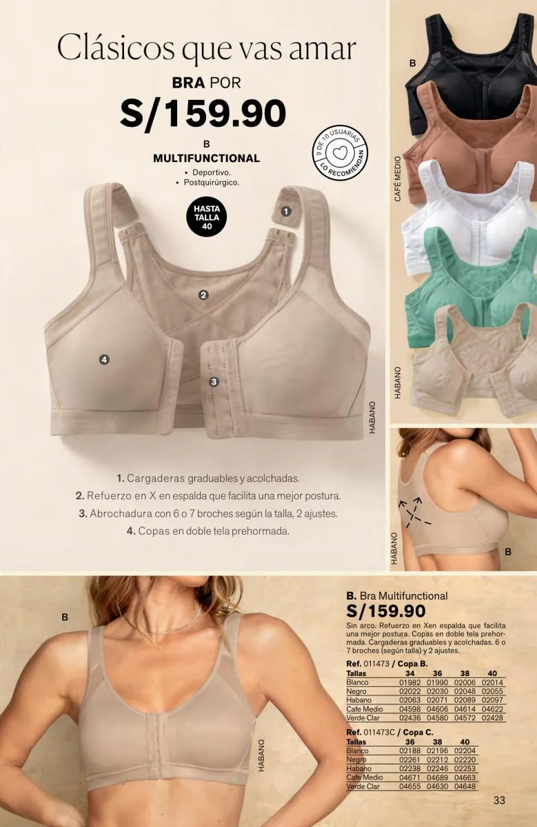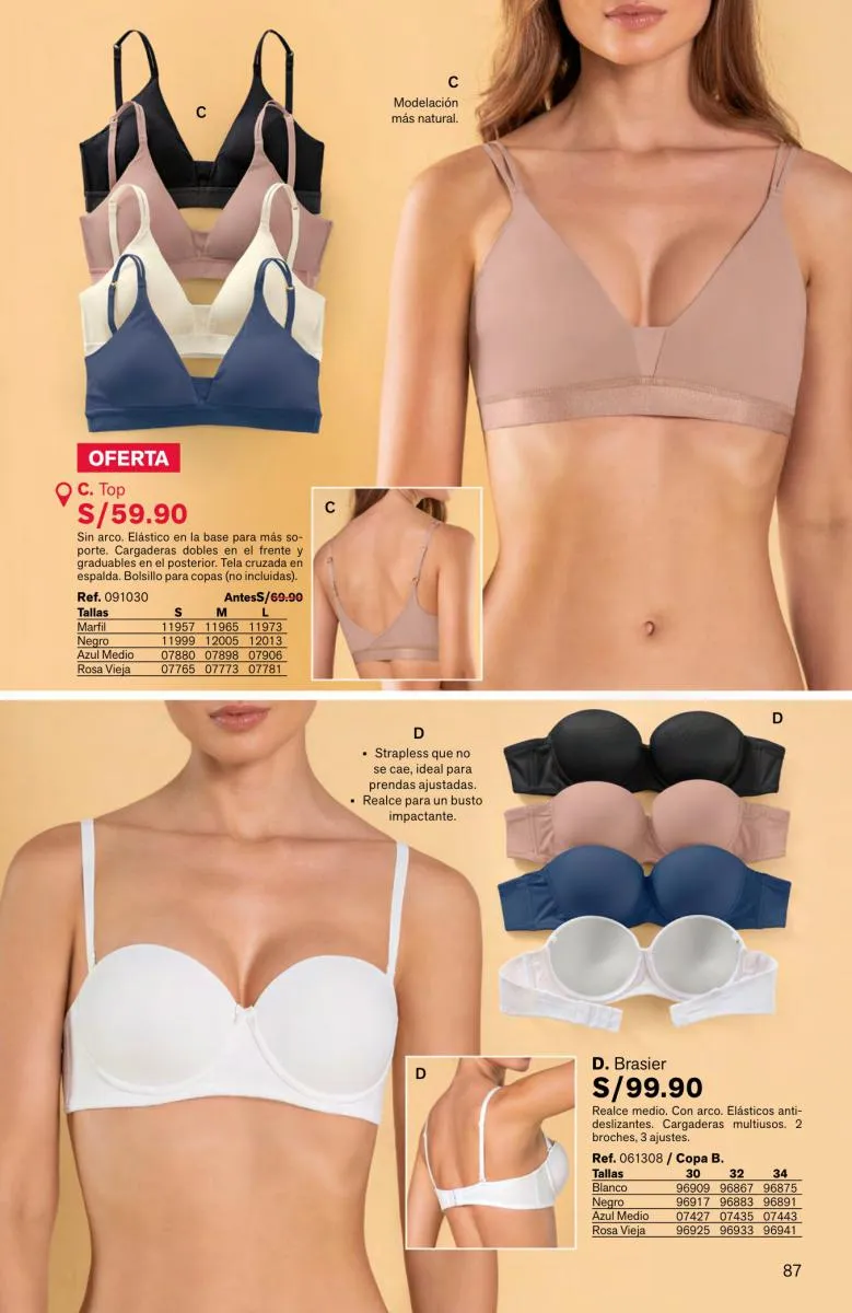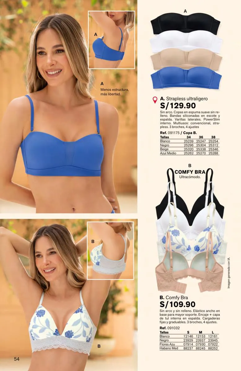 Como es costumbre, la marca Leonisa no deja por fuera las prendas de ropa interior y exterior para dama. Desde la página 20 de este catálogo Leonisa 9 2026 Perú puedes descubrir las novedades de brasieres clásicos, con encaje, strapples, antigravedad y más para ti.