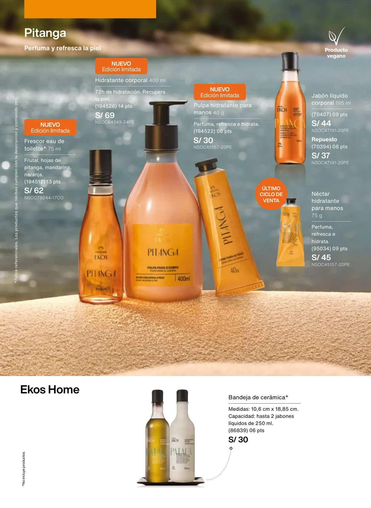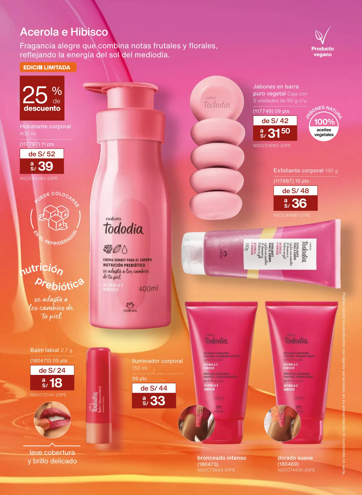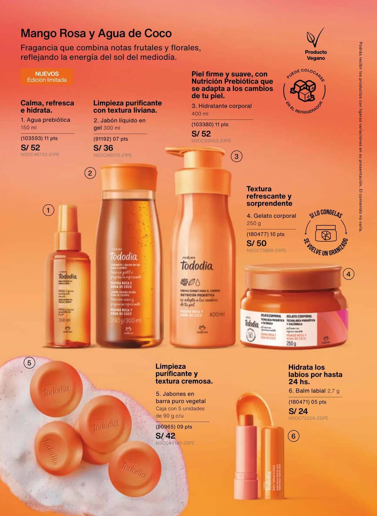 En la página 23 de este fabuloso catálogo podemos conocer la nueva propuesta que Aguas incorpora a su ya exquisita selección. Frutas tropicales es el nuevo aroma que este mes Natura ofrece a su público y seguro que junto a sus otras fragancias (cítricos, lirio y violeta) se convertirá en tu nueva favorita.