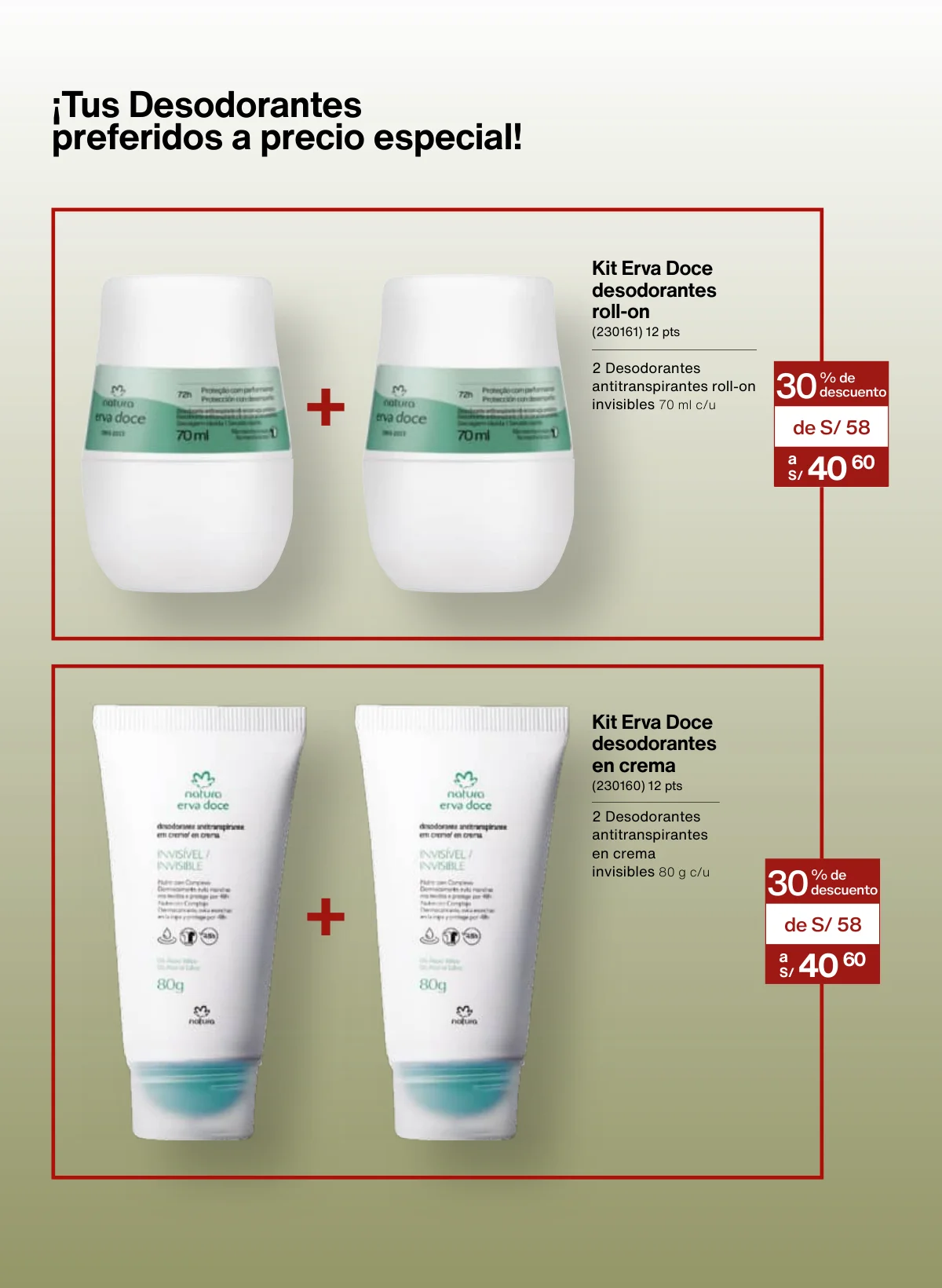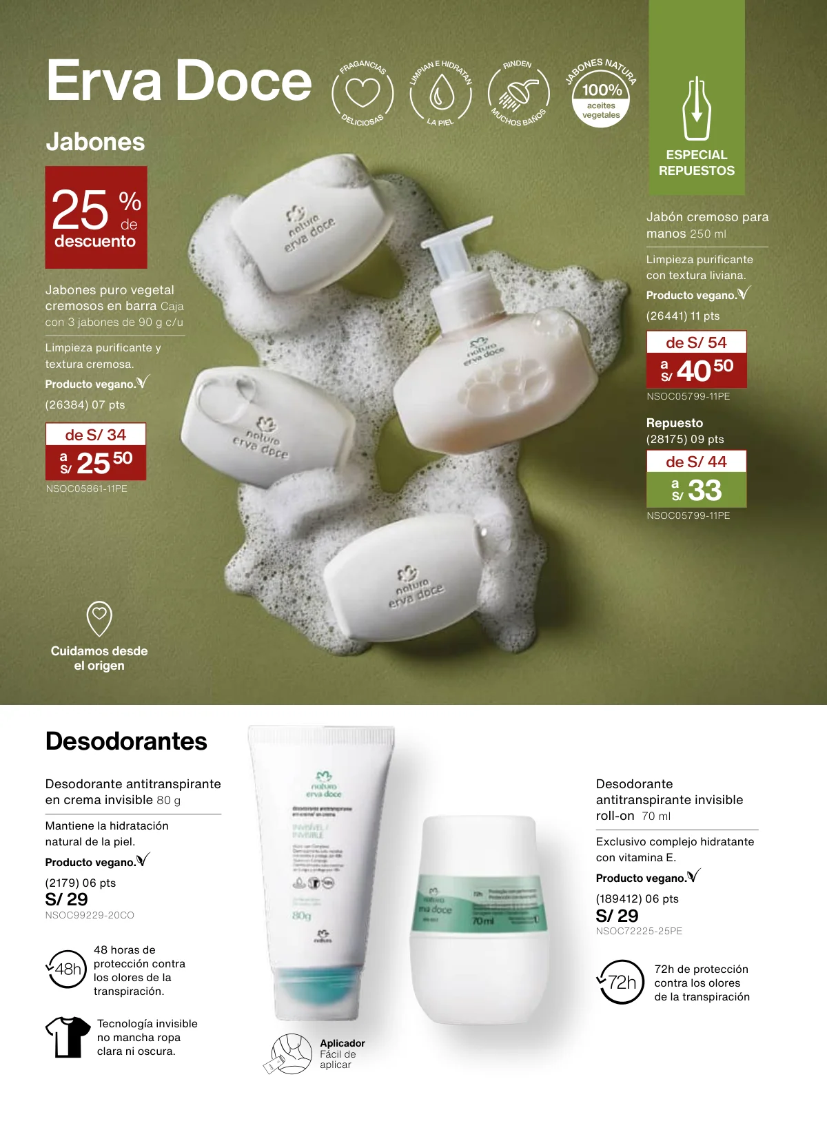 - Erva Doce es otro especial de Natura que no puedes perderte. Este mes revisa en la página 93 el 25% de descuento en desodorantes y jabones.