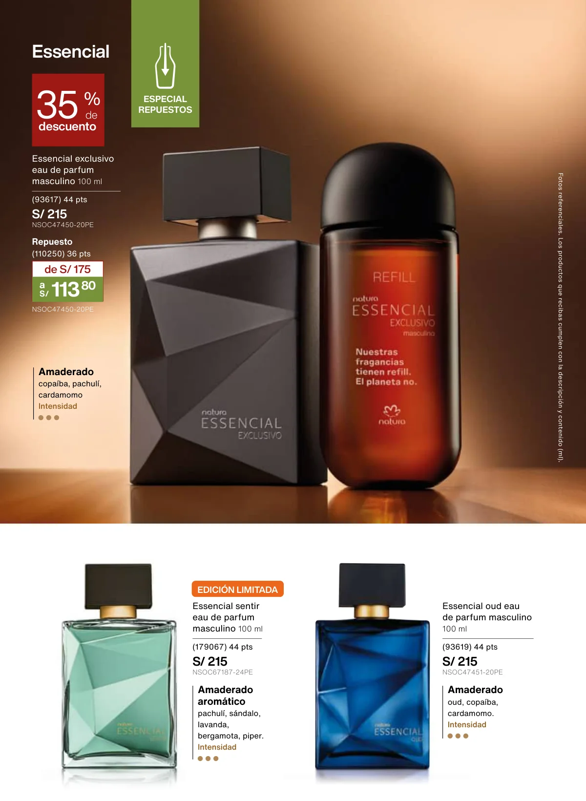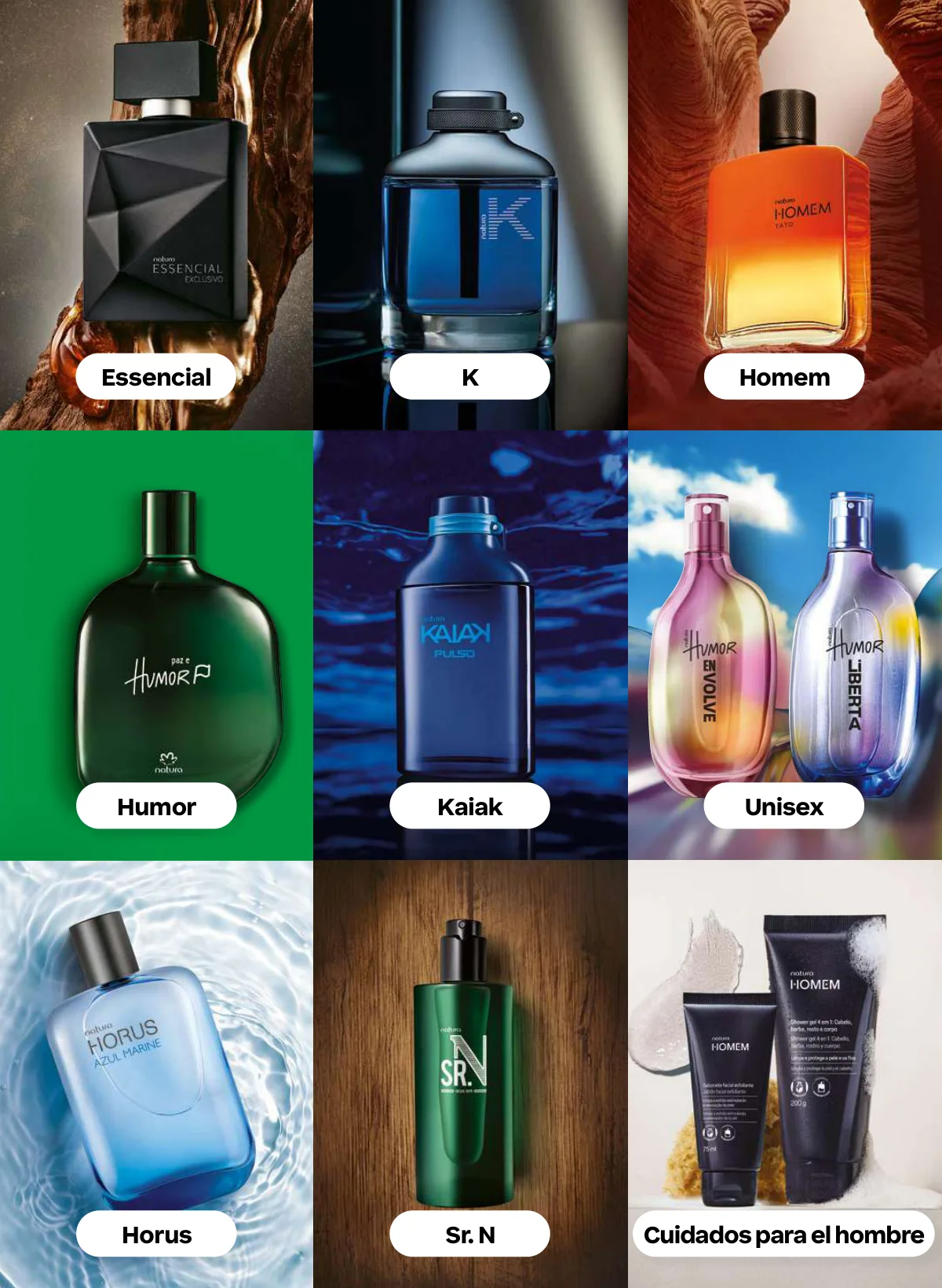 En esta campaña las demás fragancias de Natura siguen presentes. Desde las especiales para caballero como Essencial, en todas sus presentaciones o la diversidad que siempre presenta Homem.