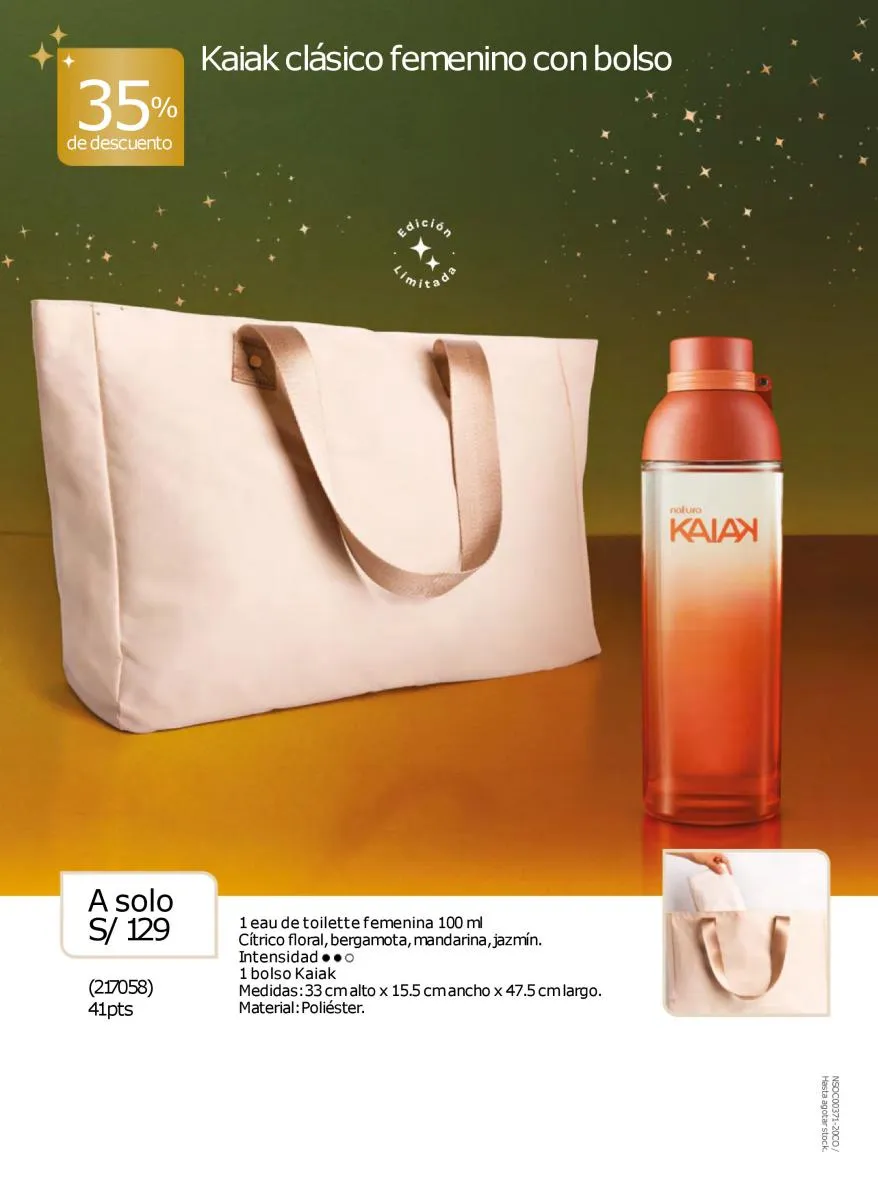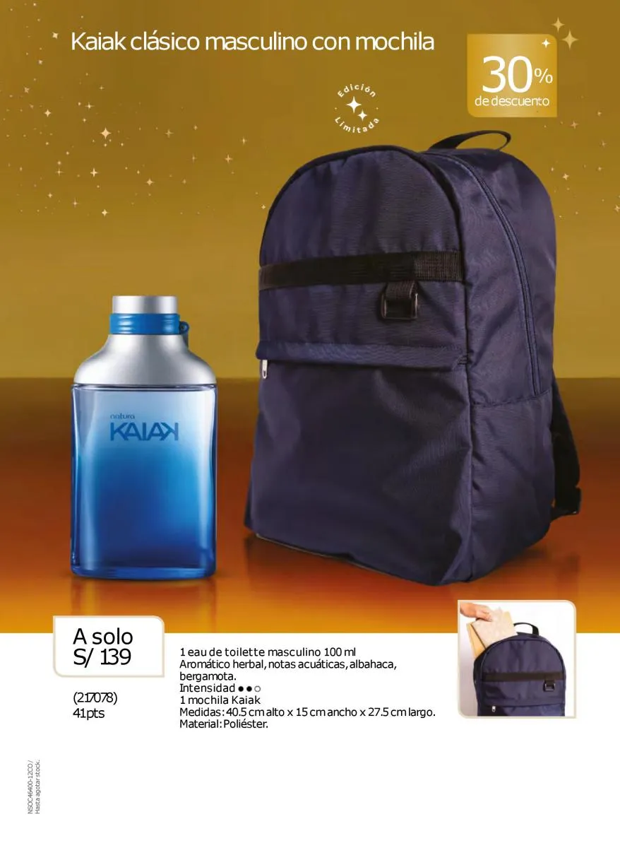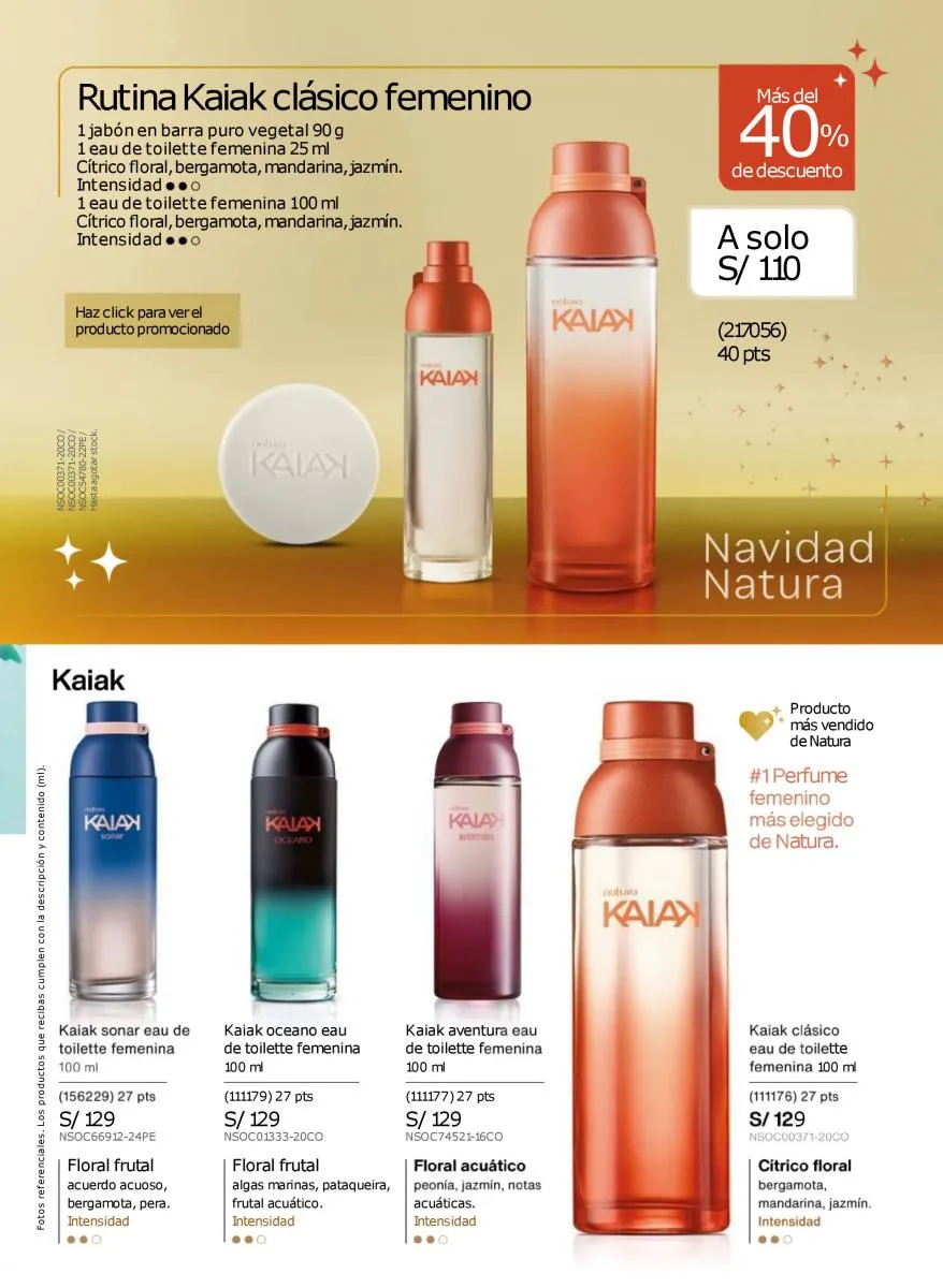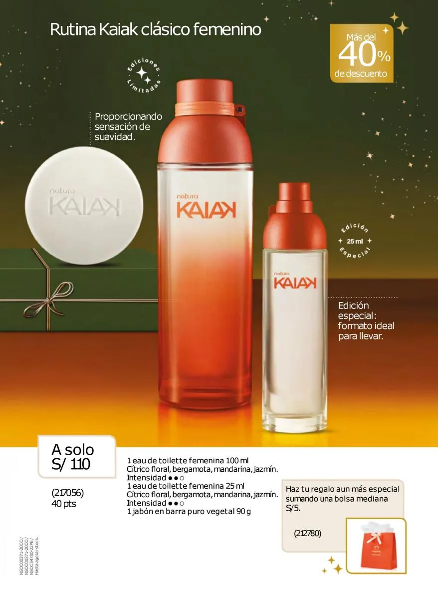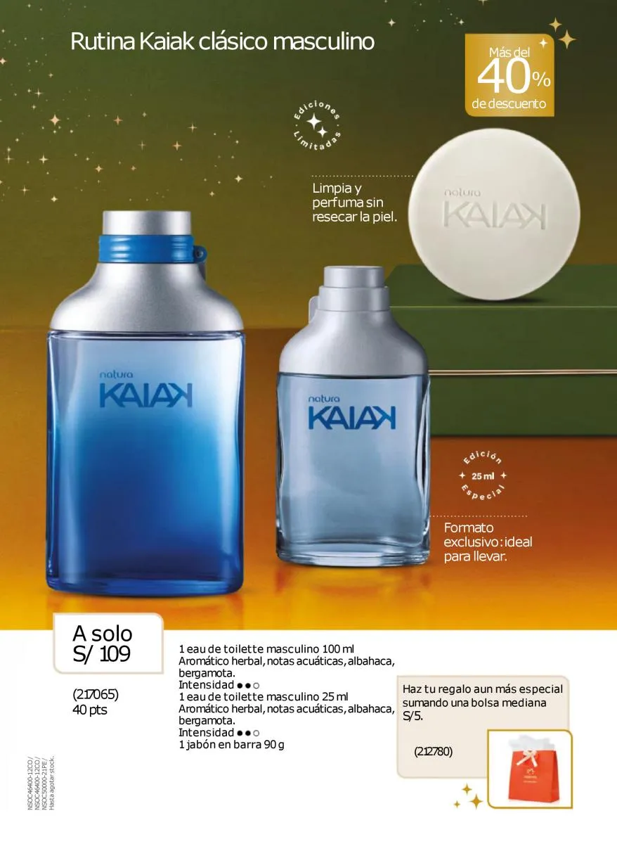 - Kaiak clásico masculino es otro ganador en “favoritos para obsequiar”. En esta campaña lo consigues a 35% off con un trio fantástico: eau de parfum de 100 ml, la crema 2 en 1 de afeitar y un jabón de tocador.