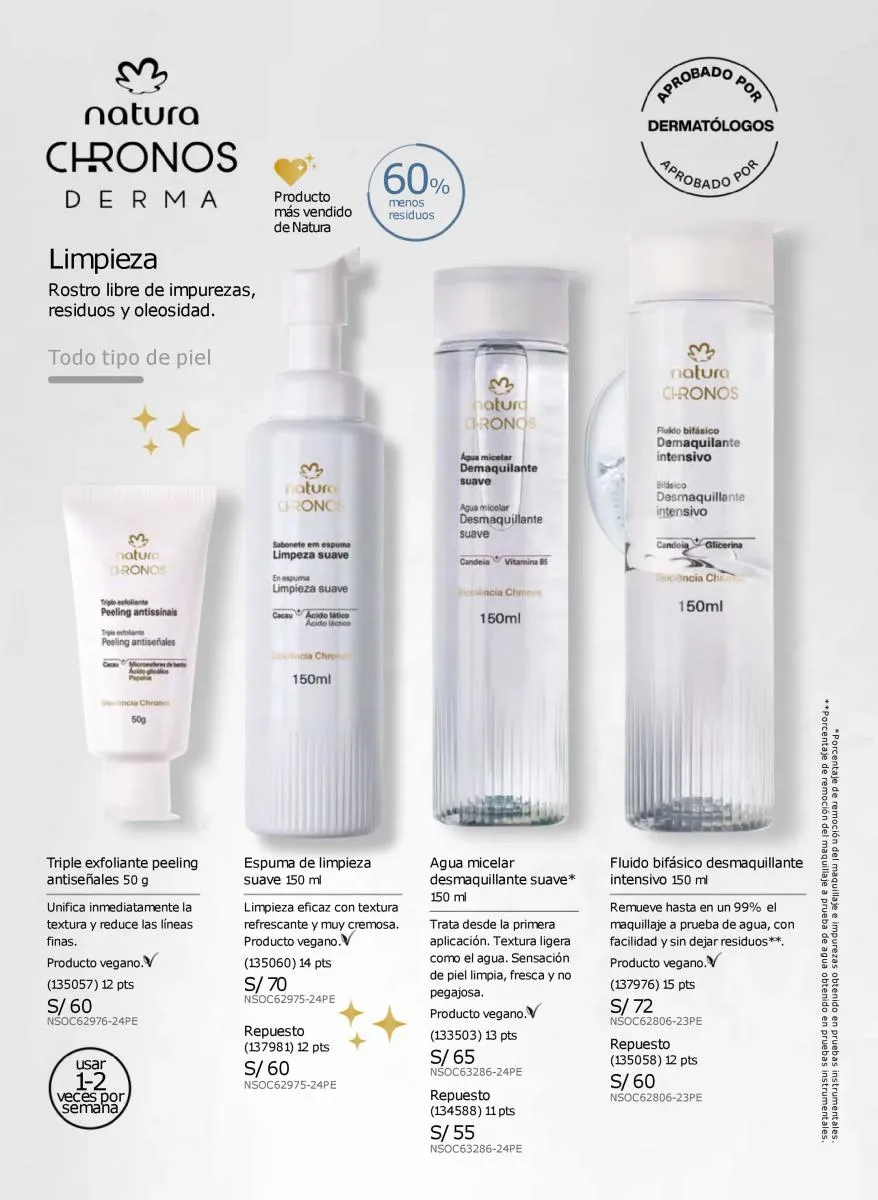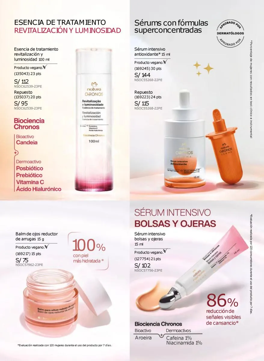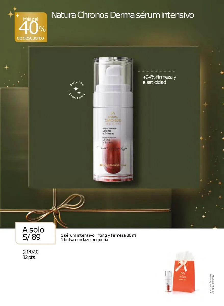 Además de una fantástica propuesta de maquillaje, la rutina de cuidado facial de Natura, con su línea Chronos es infaltable en tu preparación para estas Navidades. Imposible dejar pasar los precios de sus tónicos Detox, sérum superconcentrado o cremas especiales para cada grupo de edad.