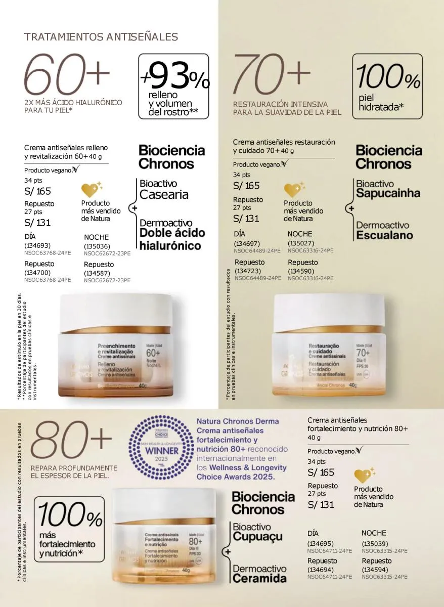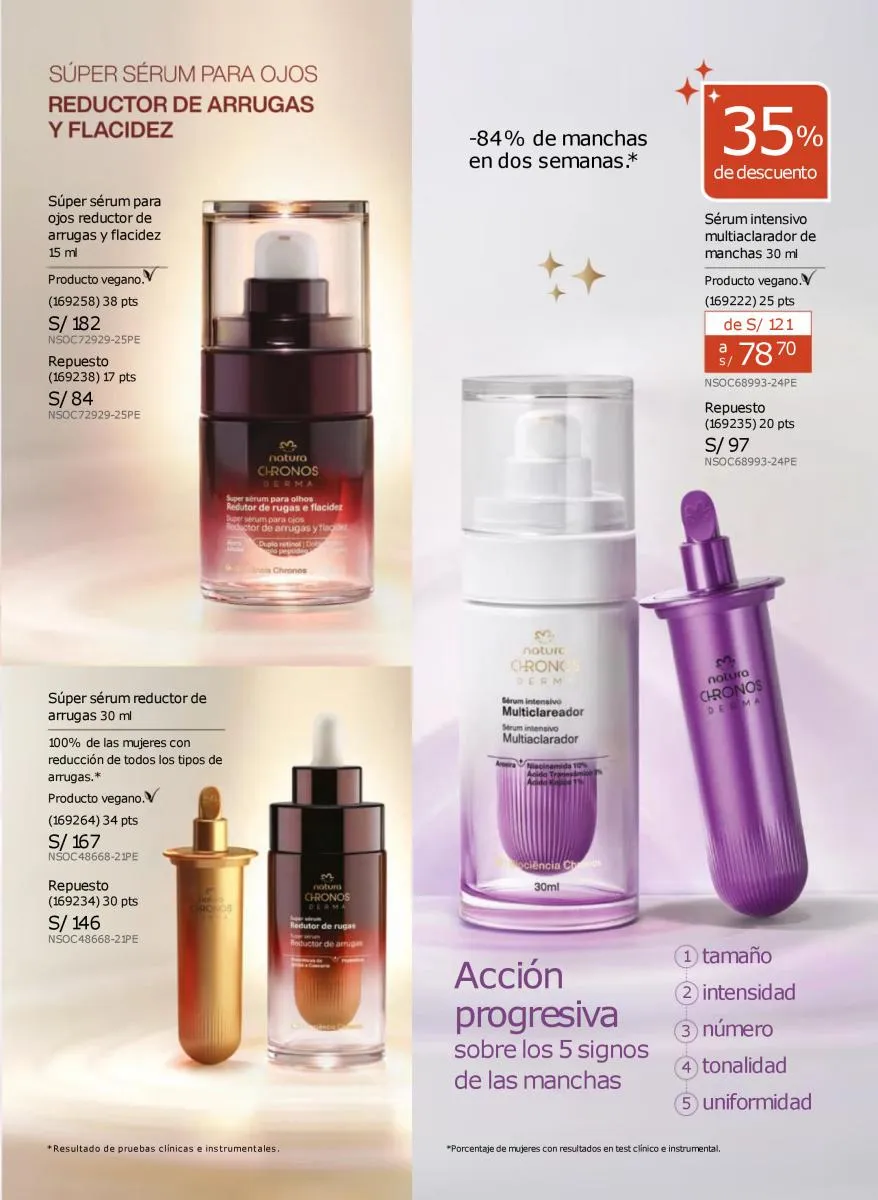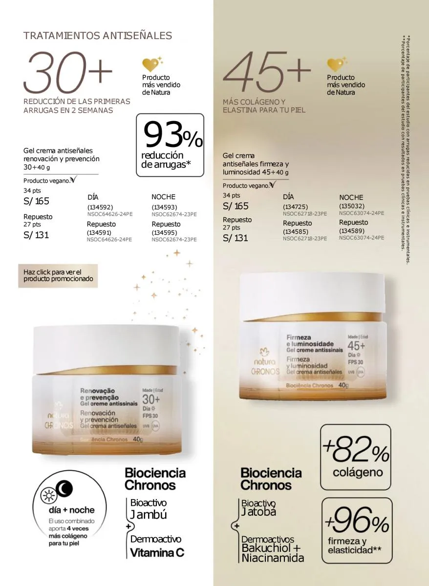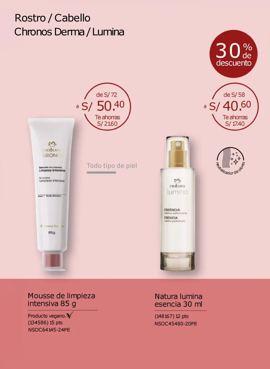 Además de una fantástica propuesta de maquillaje, la rutina de cuidado facial de Natura, con su línea Chronos es infaltable en tu preparación para estas Navidades. Imposible dejar pasar los precios de sus tónicos Detox, sérum superconcentrado o cremas especiales para cada grupo de edad.