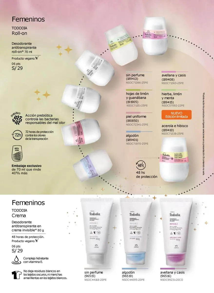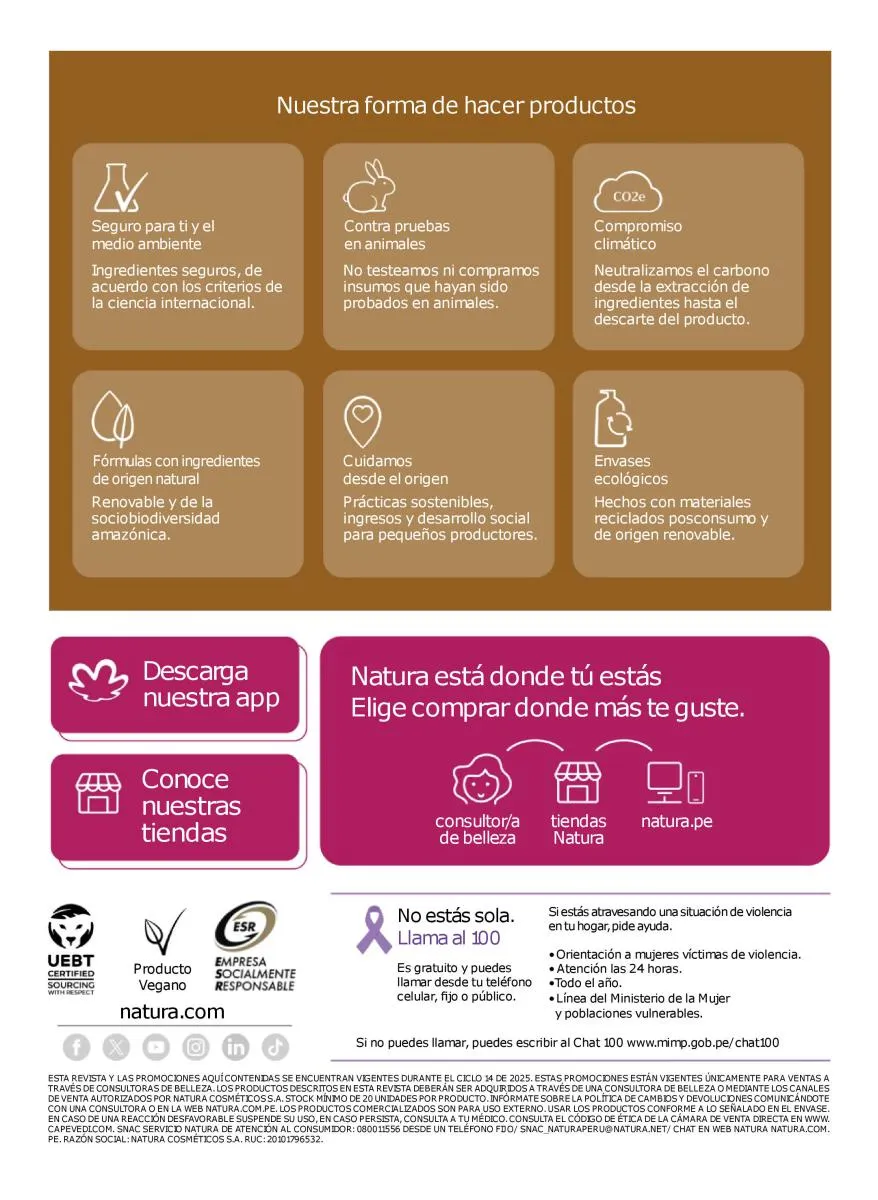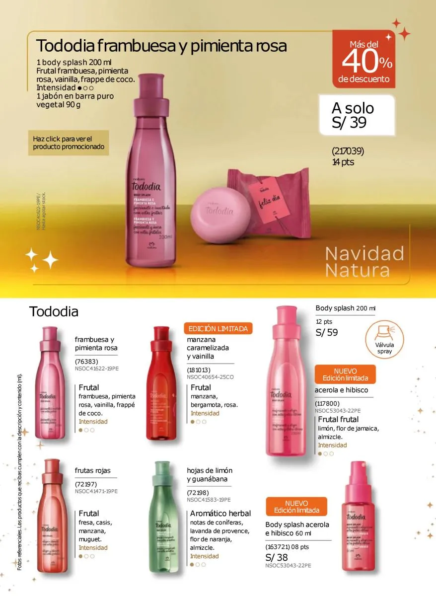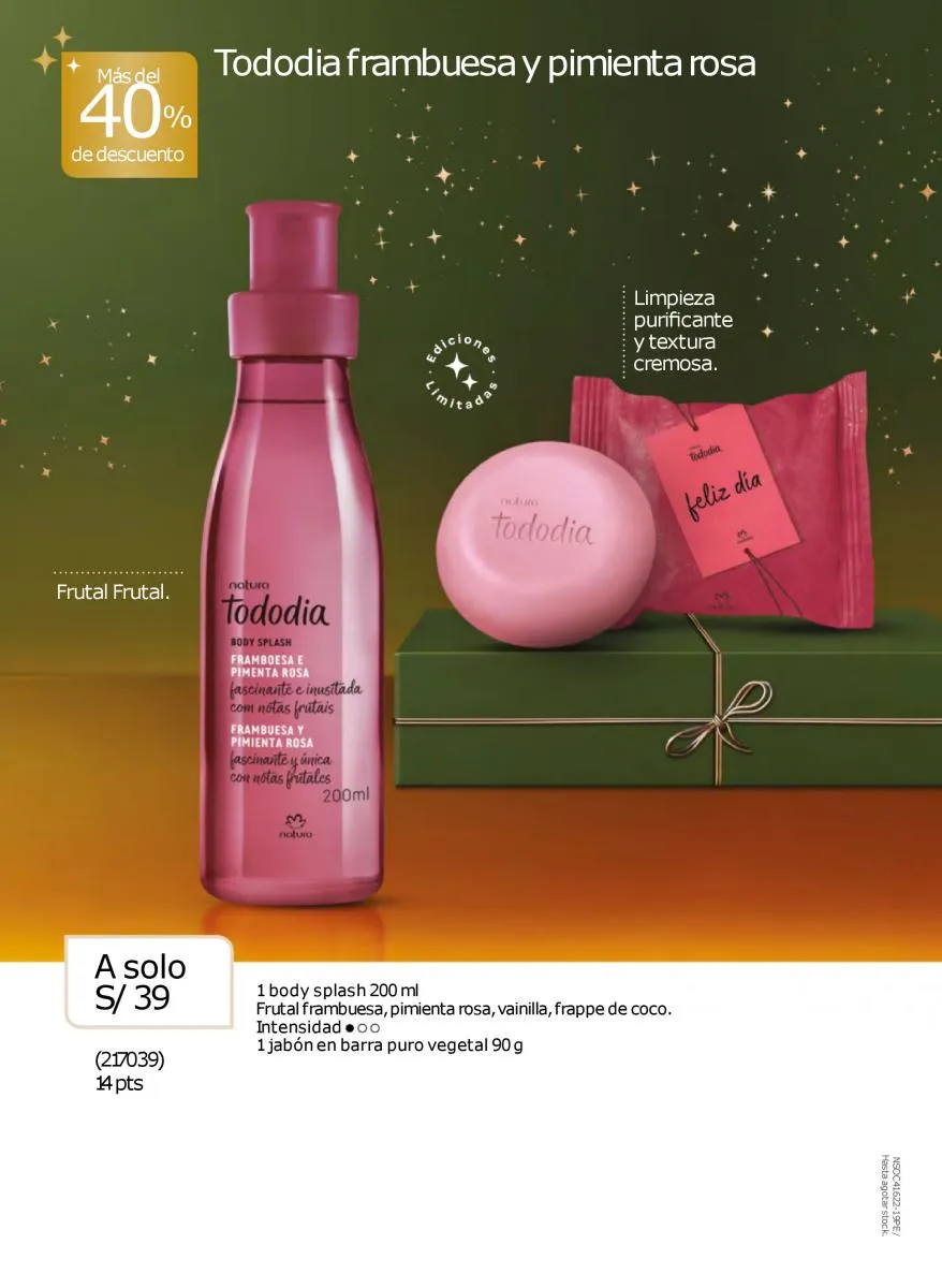 No podemos despedir este resumen de este catálogo Natura 17 2025 Perú sin mencionar dos de las líneas más queridas de Natura: Tododia, que resulta una especialista en cuidado personal para toda la familia.