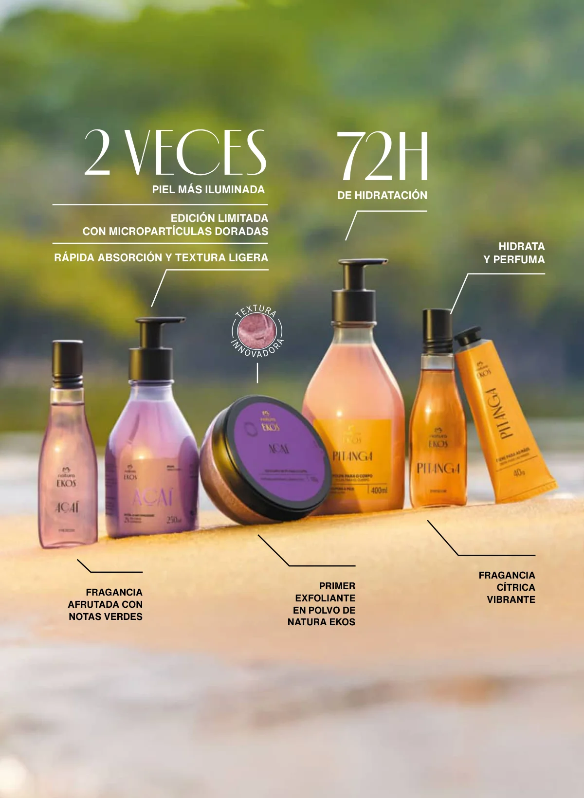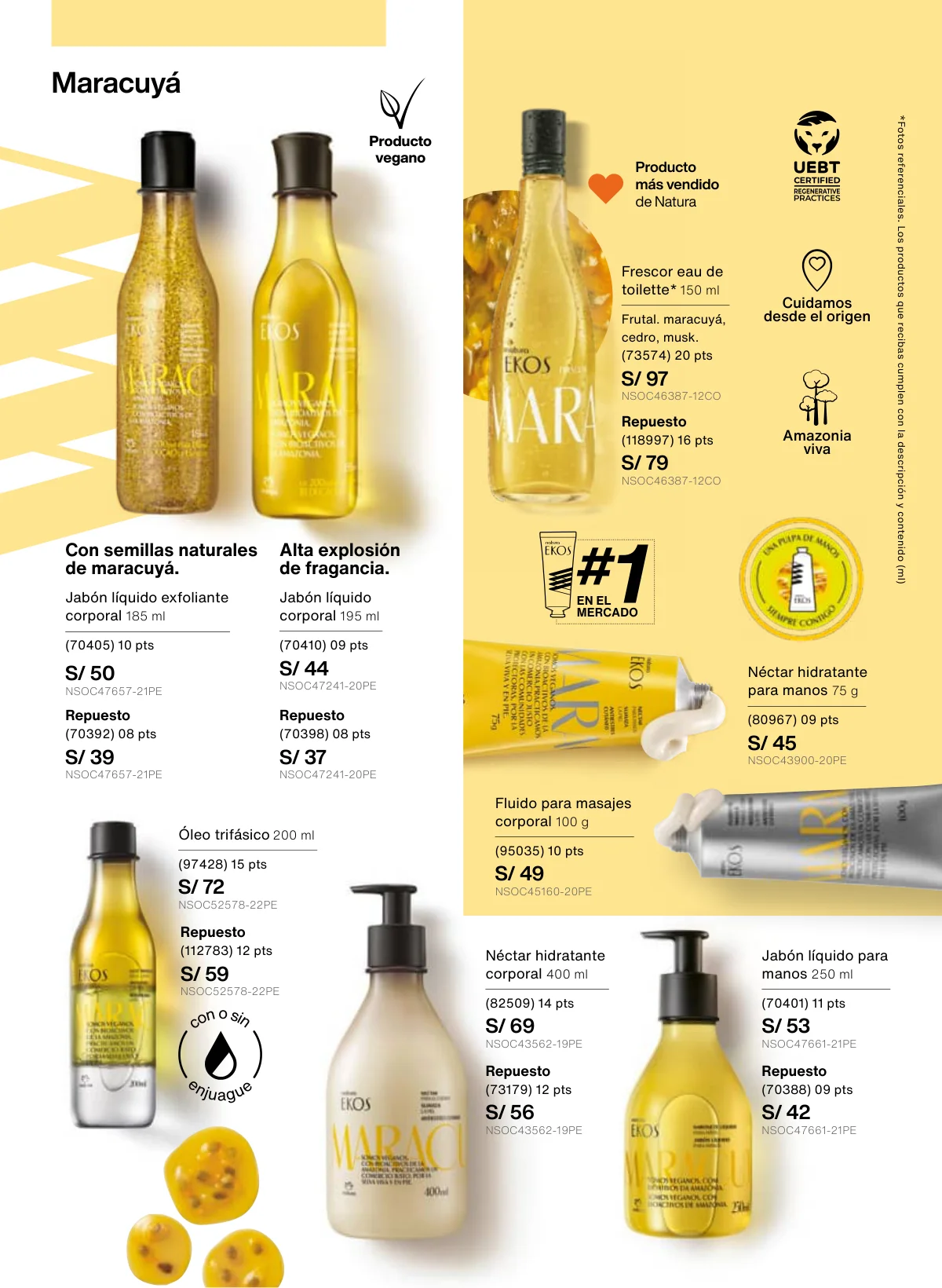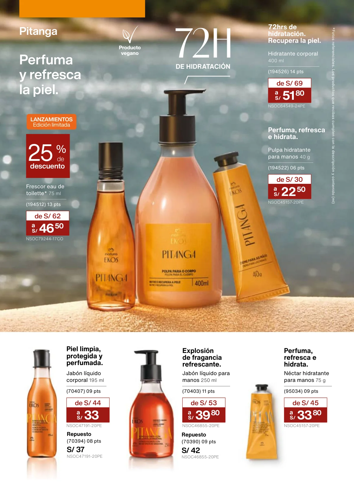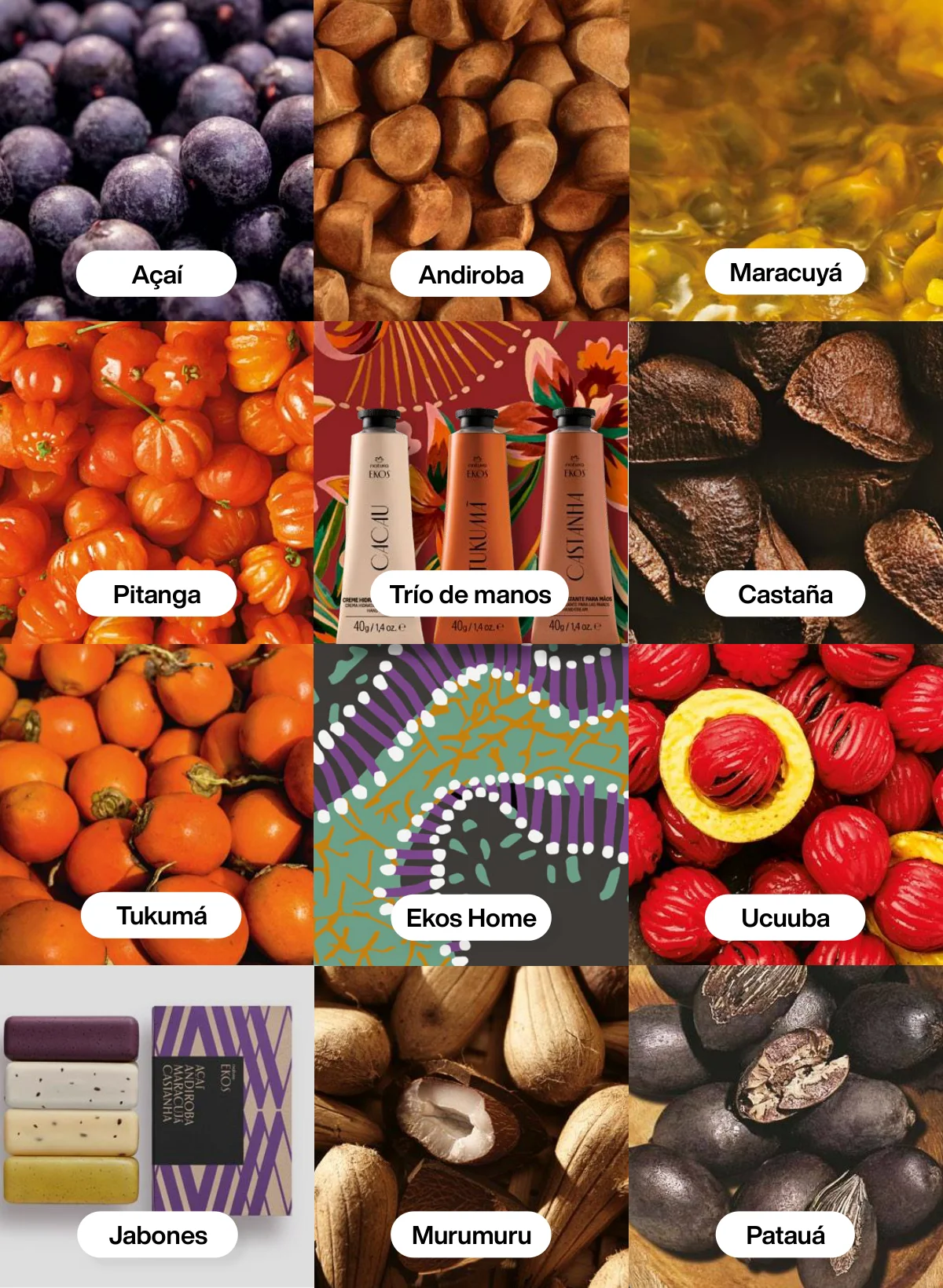 - Otra marcar insigne es Ekos y como regalo especial Natura te da la opción de llevar en una hermosa caja un set de fragancia de Pitanga de frescor y dos jabones: uno corporal y otro de manos.