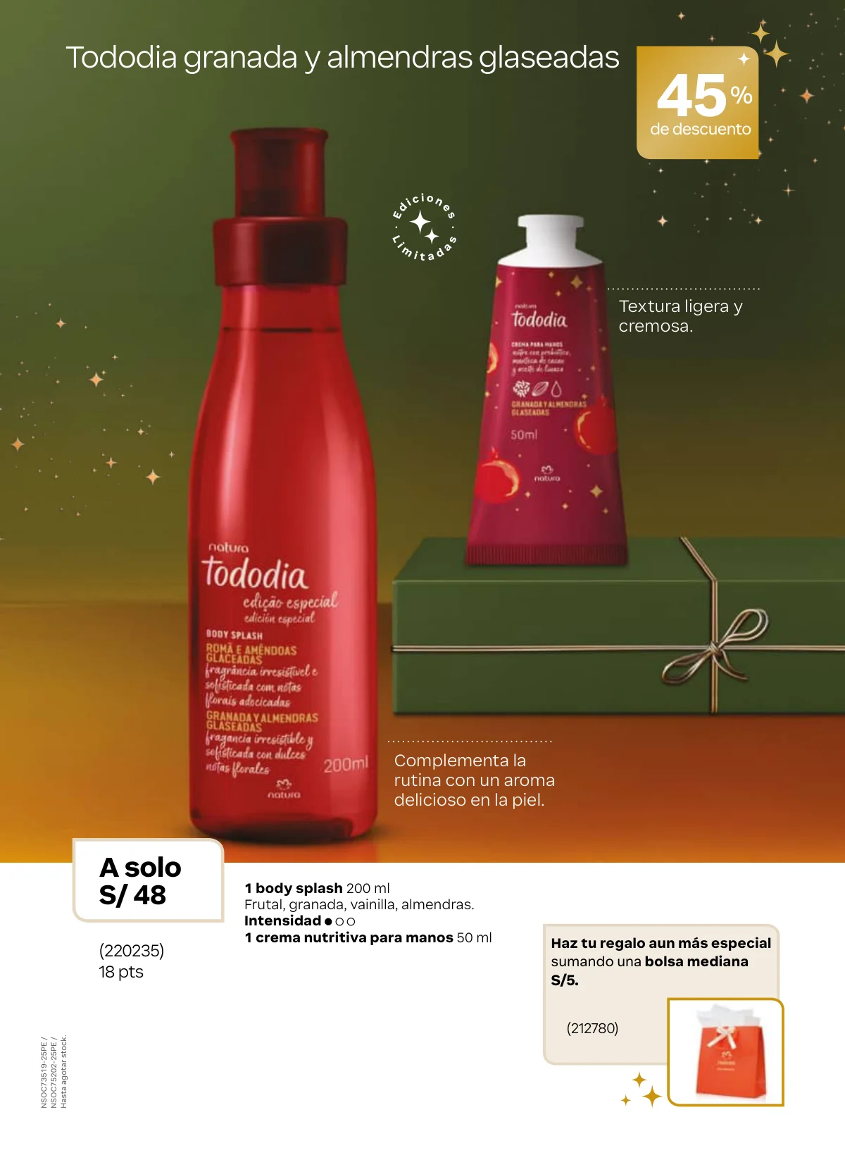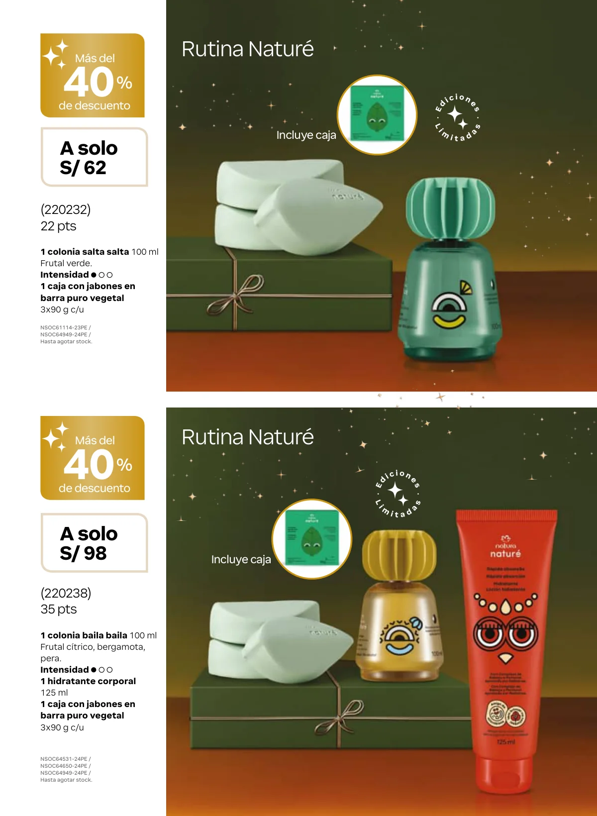 Hay mucho más para el cuidado de tus manos, pies, para bebes y claro, variedad de fragancias. Todo ideal para obsequiar y despedir el año al mejor estilo Natura Perú.