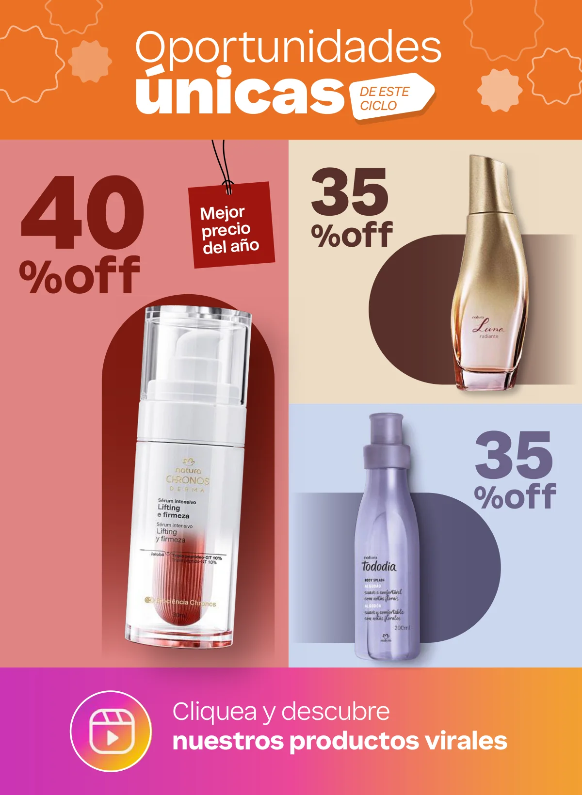 - O los súper tratamientos de Ekos, la línea insigne de Natura con los aromas y fórmulas más efectivas para tu cuidado.