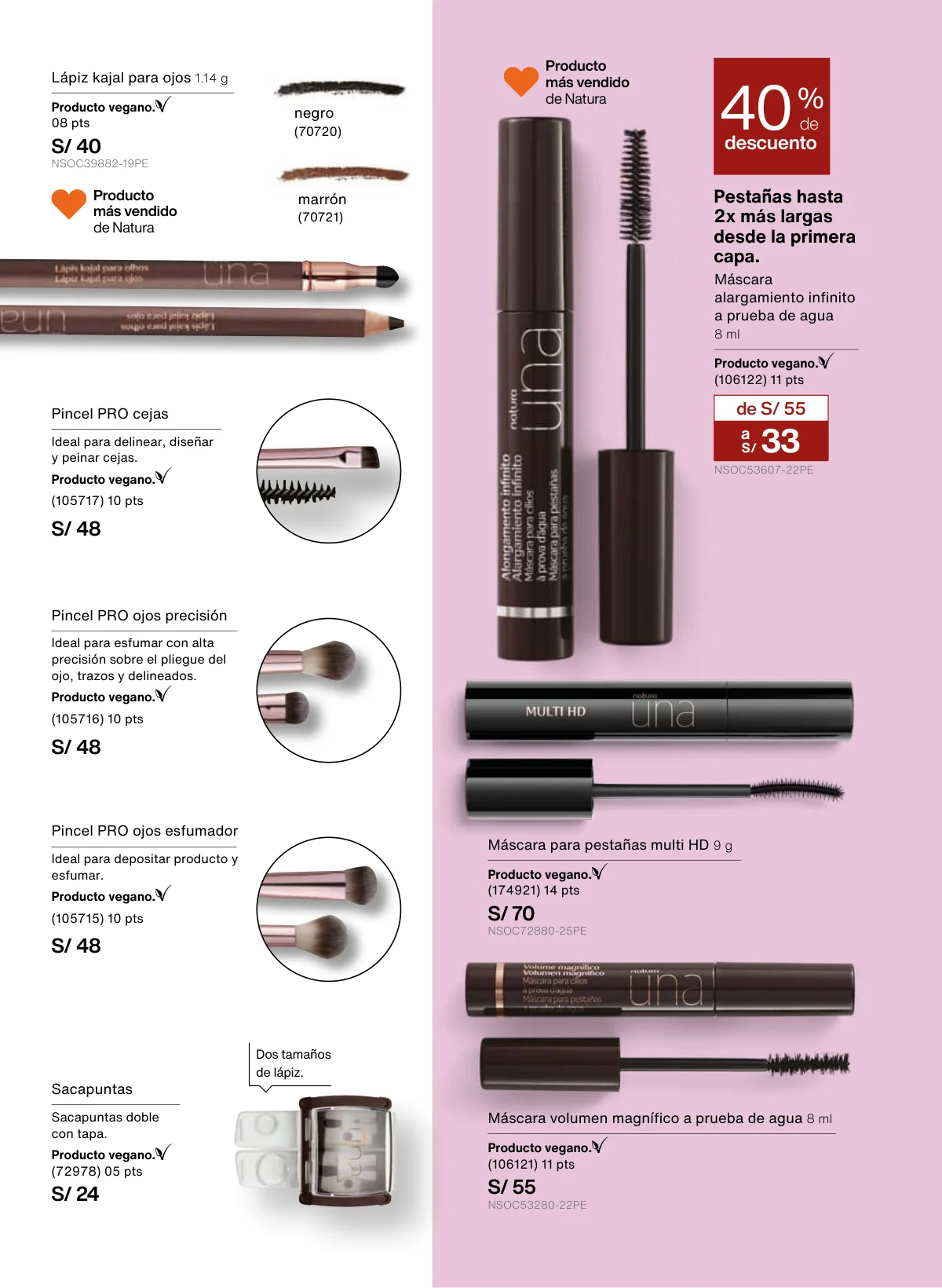 Esta conjunción la vemos en el regalo ritual de Chromas (agua micelar purificante) y la máscara de pestañas 2 en 1 de UNA. Revisa sus características y promoción de 35% de descuento en la página 15 de este catálogo Natura ciclo 3 2026.