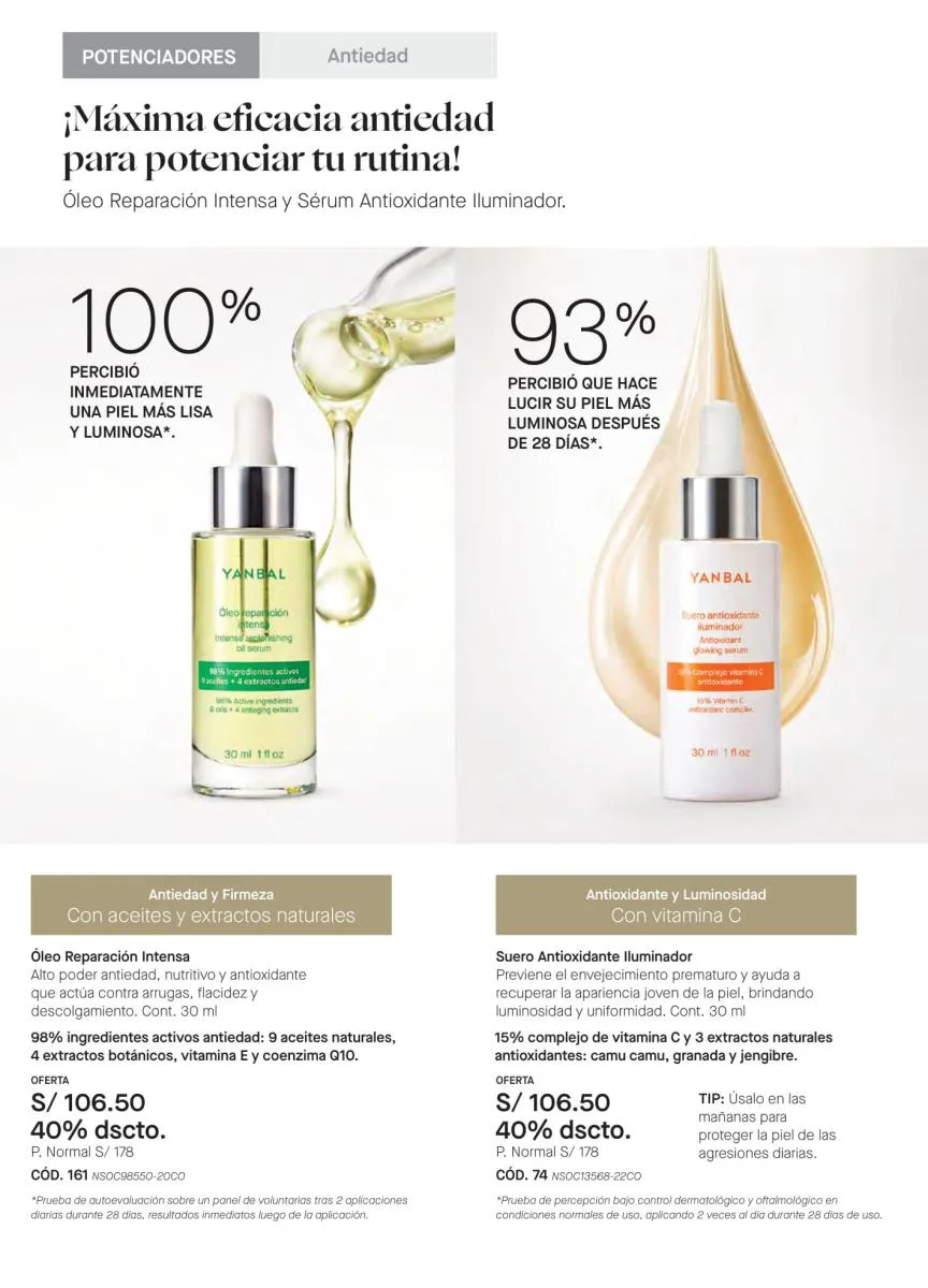 - La revolución de los boosters ha llegado a Yanbal, puedes combinarlos con los productos de tu rutina para potenciar sus beneficios o usarlos solos luego de limpiar la piel. Pag 2.