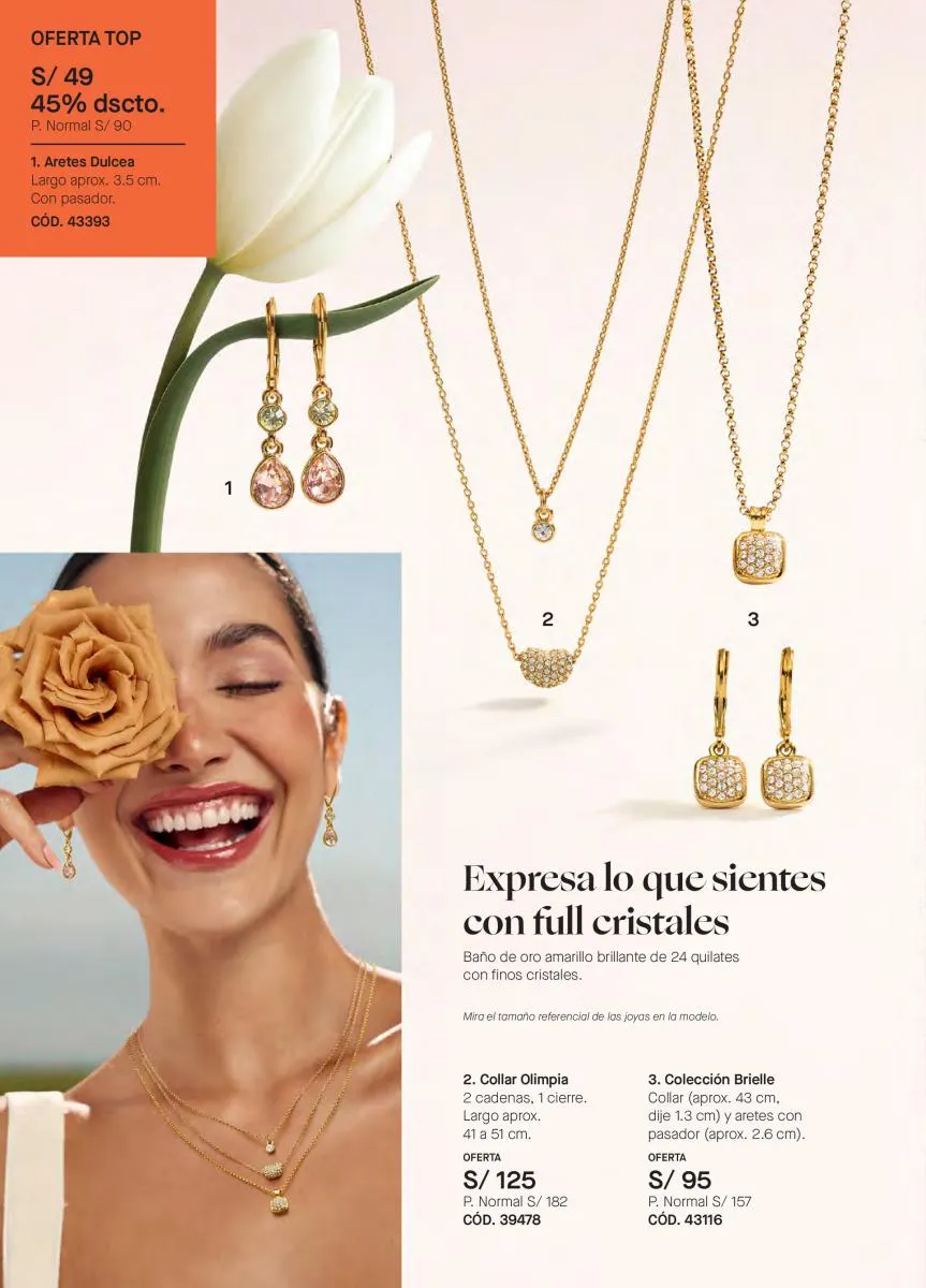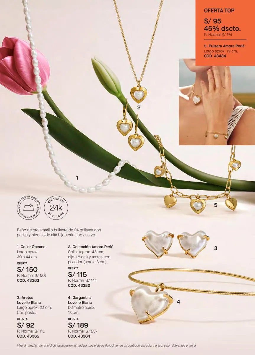 - Set Collares Gloria, sin lugar a dudas, el regalo perfecto para compartir con esa persona especial. Set de dos collares con baño de oro semibrillante de 24 kilates y bronce brillante, piedras y perlas blancas; sin duda una pieza de alta bisutería Yanbal Pag 41.