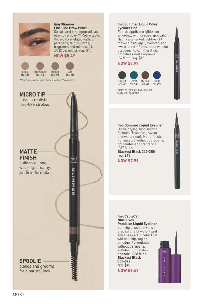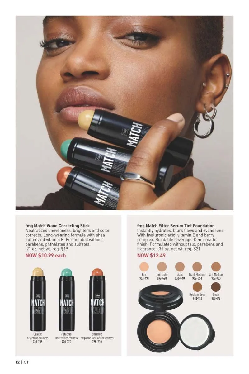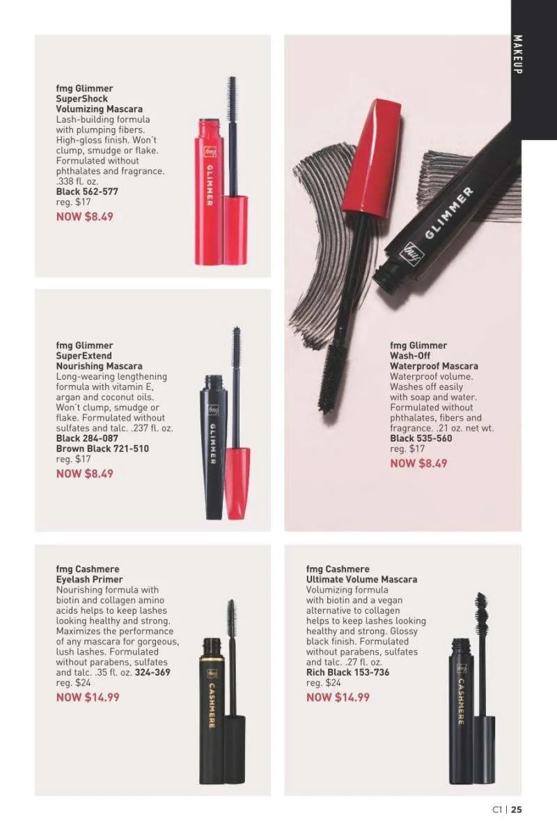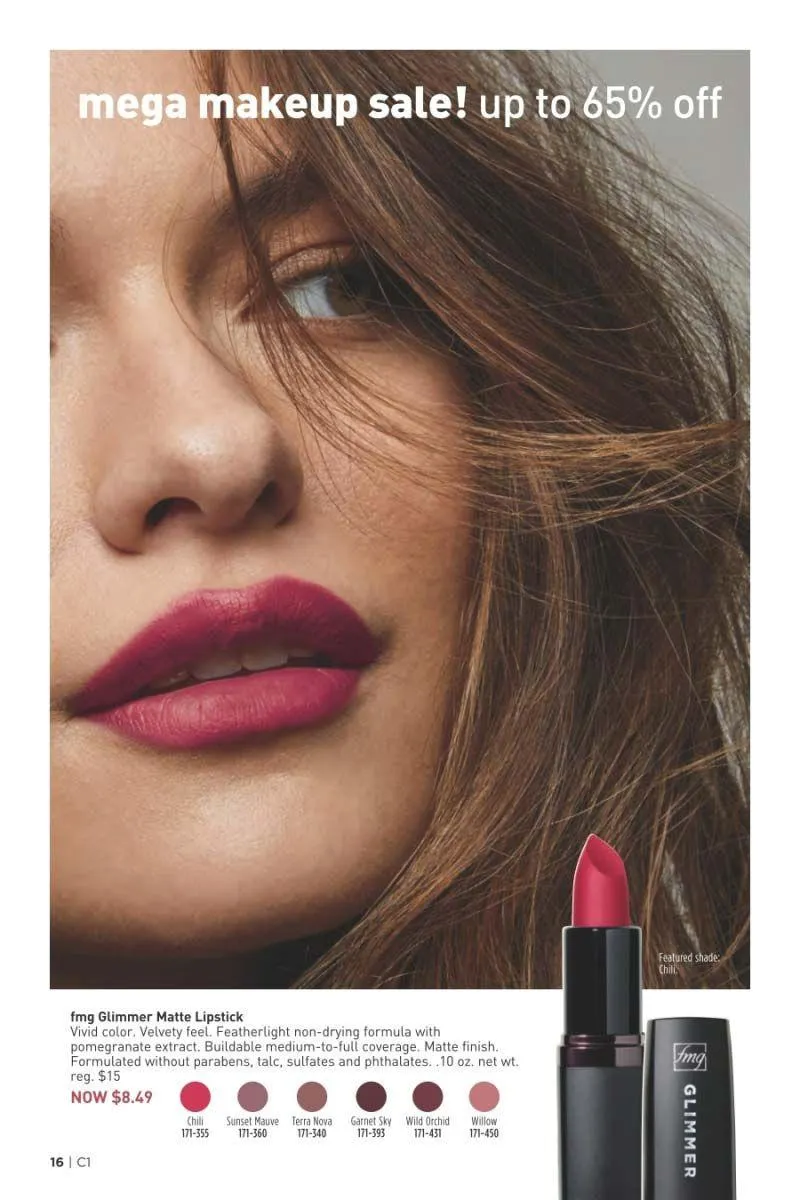 The spotlight this season is clearly on lips. The brochure opens with an arresting visual: voluminous red lips in a satin finish that command attention. This hero look is achieved using Avon’s fmg Glimmer Satin Lipstick, now available at a deeply discounted price. Formulated with pomegranate extract and free from parabens and sulfates, it delivers a lightweight yet creamy texture and impressive color payoff. The featured shade, Blaze, is the ultimate red vibrant, versatile, and universally flattering.
