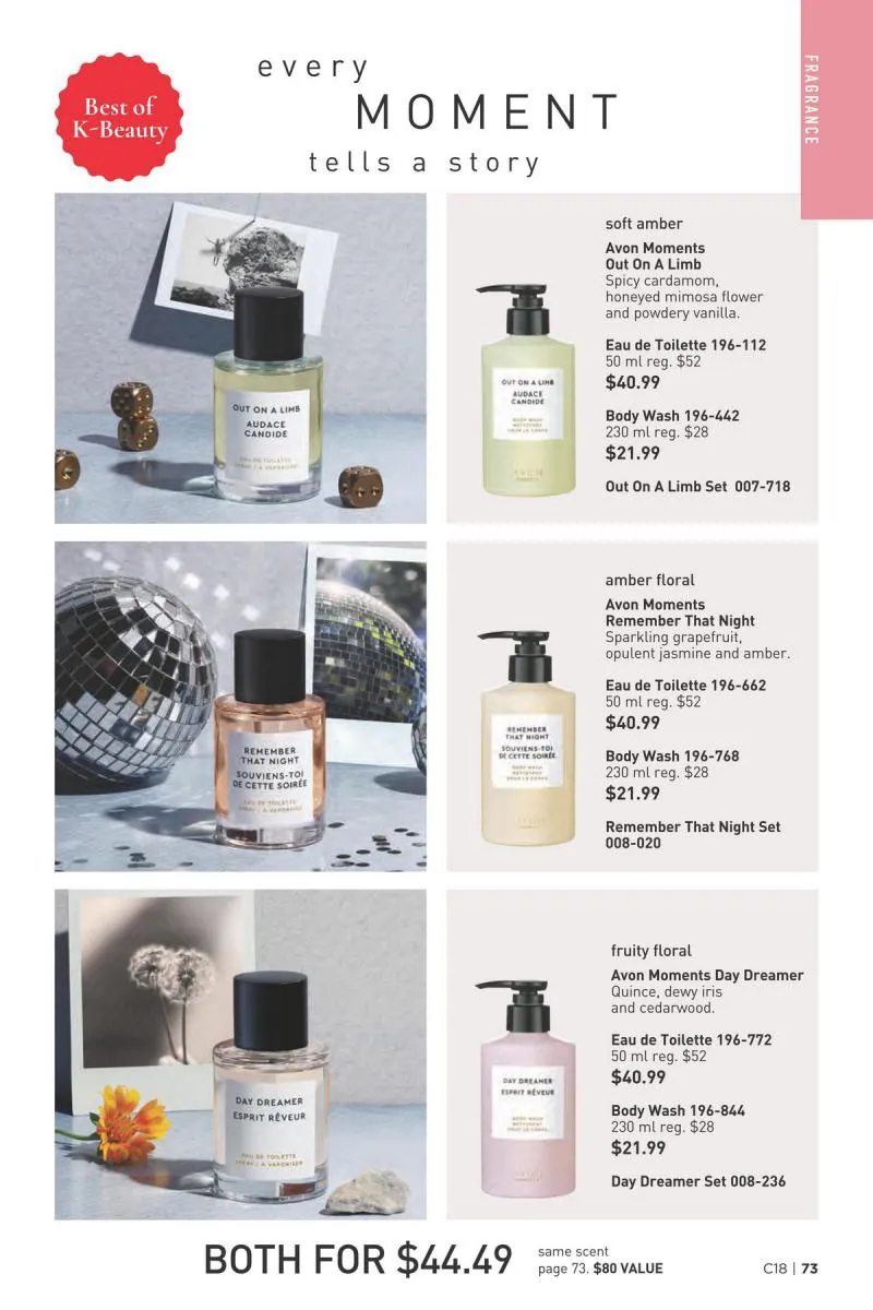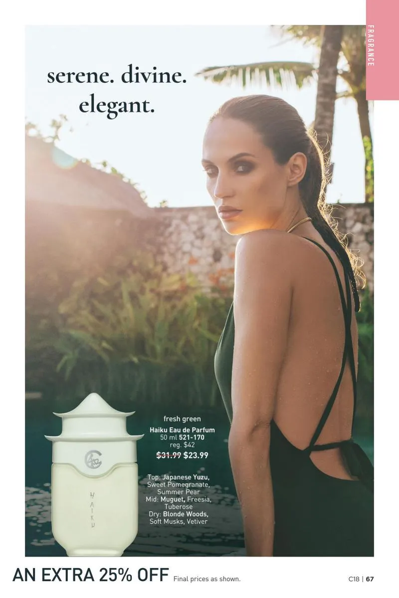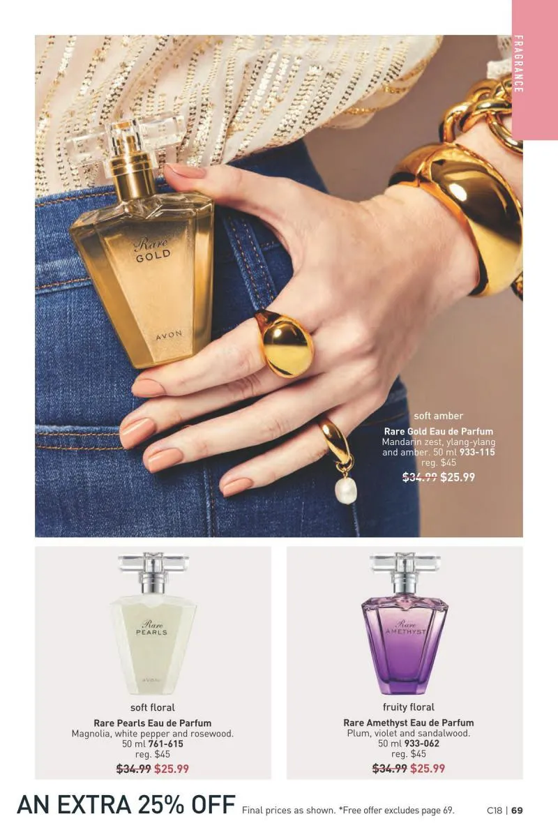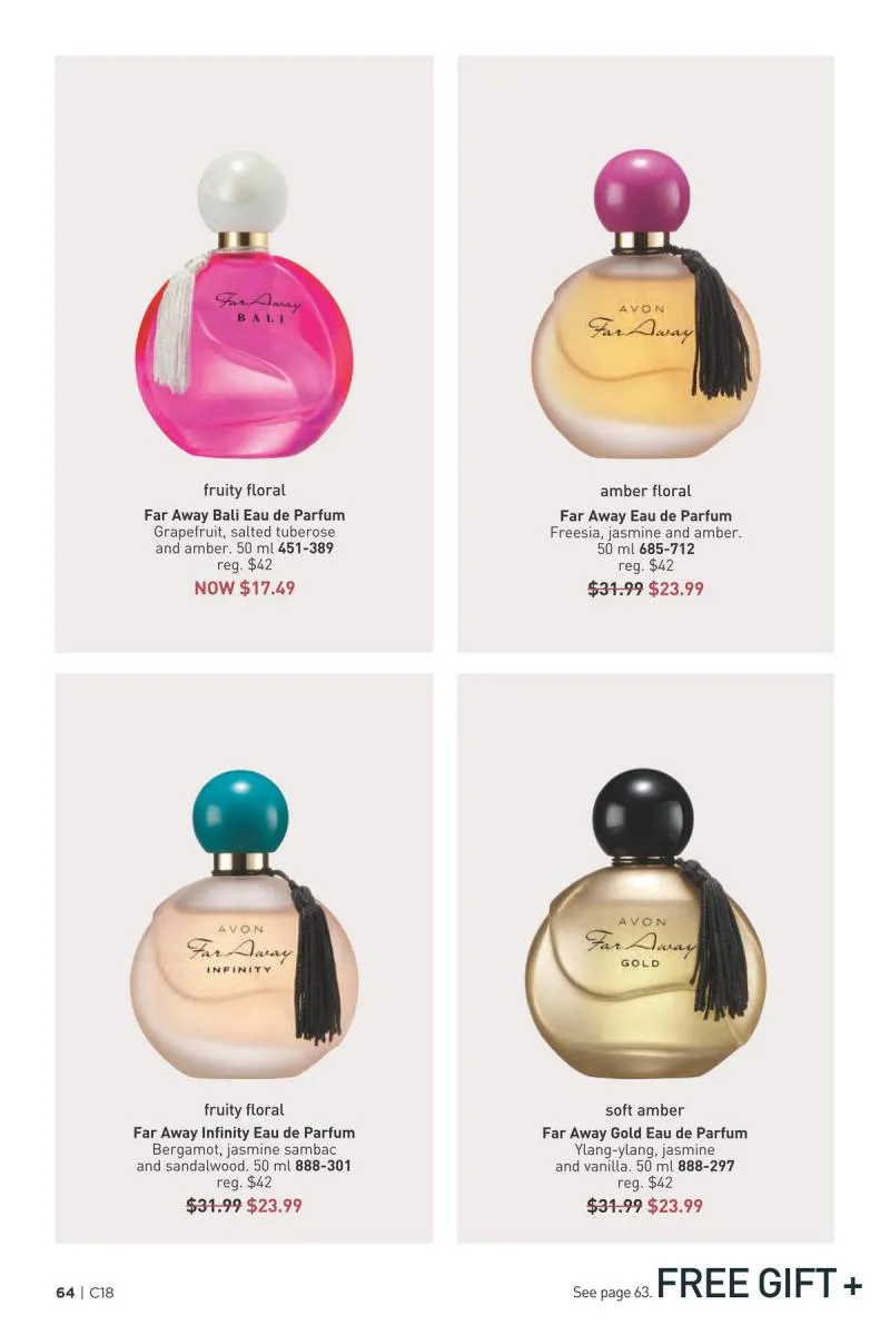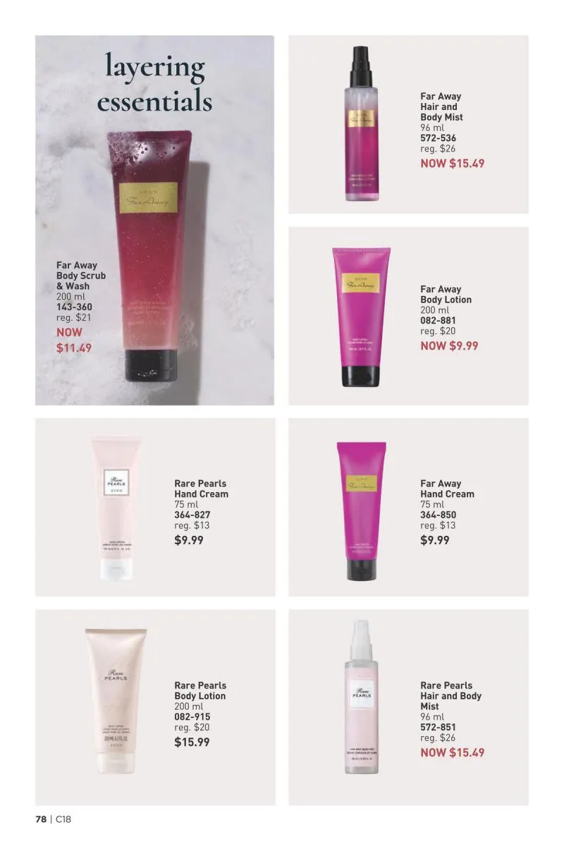 Avon brochure 18 2025 offers more than just perfumes it encourages you to build a complete fragrance routine. Collections like Rare Pearls, Far Away, and Haiku expand into complementary products such as body lotions, hand creams, scrubs, and hair & body mists.