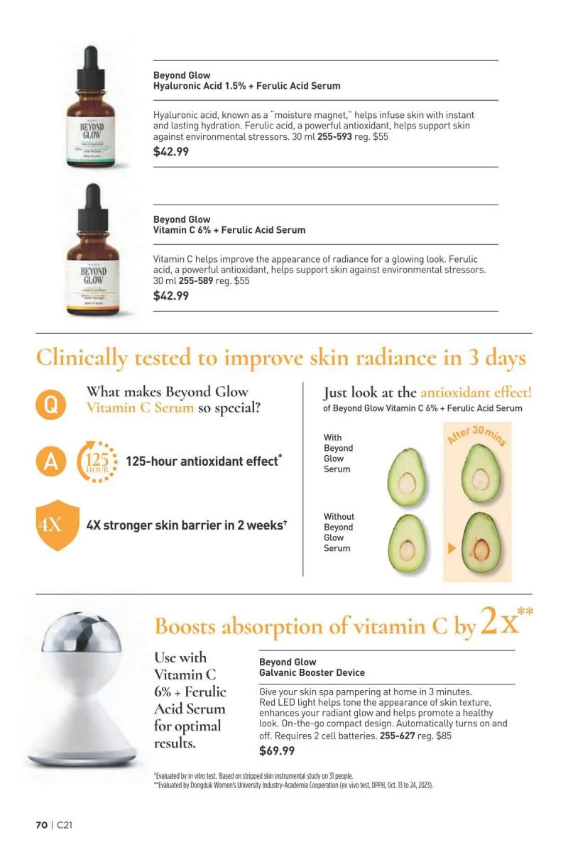 A standout section of the Avon brochure Canada focuses on the power of Vitamin C. This skincare hero is featured in a full suite of products that illuminate, hydrate, and protect perfect for battling Canada’s ever-changing weather.