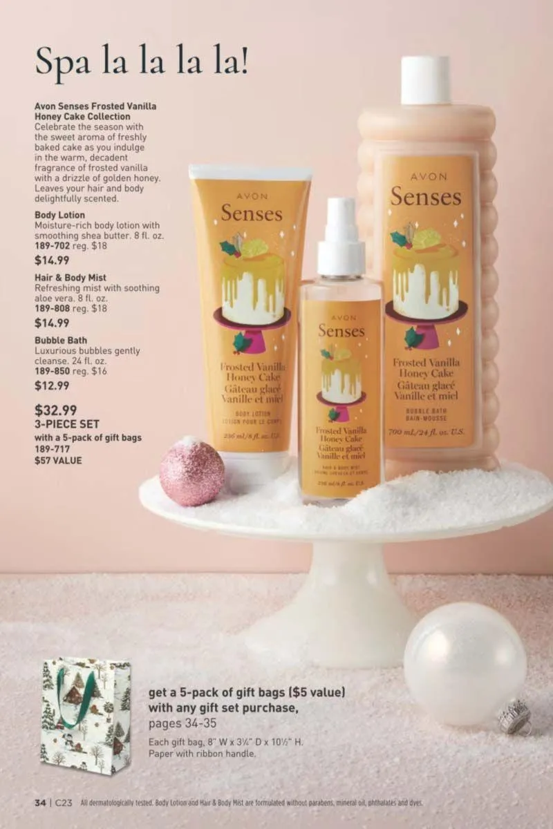 Bring seasonal joy into your self-care routine with the Avon Senses Frosted Vanilla Honey Cake Collection. Inspired by the cozy scent of freshly baked holiday treats, this set features warm notes of frosted vanilla, honey, and golden sweetness.