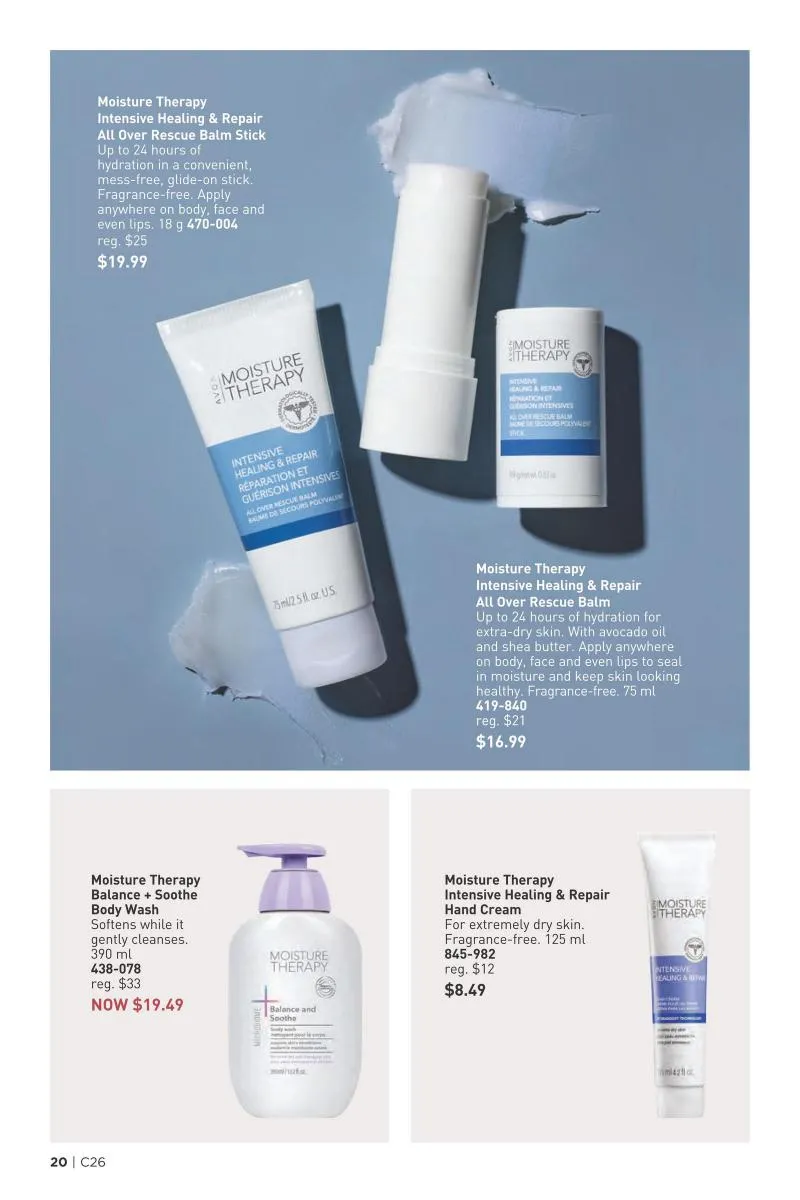 New to Avon brochure Canada 26 2025 is the All Over Rescue Balm, available in both stick and cream formats. With up to 24 hours of moisture, it’s an easy, mess-free solution for lips, hands, elbows, and even faces exposed to harsh Canadian elements. Shea butter, avocado oil, and panthenol combine to create a versatile balm that’s as suitable for urban commuters as it is for winter adventurers.