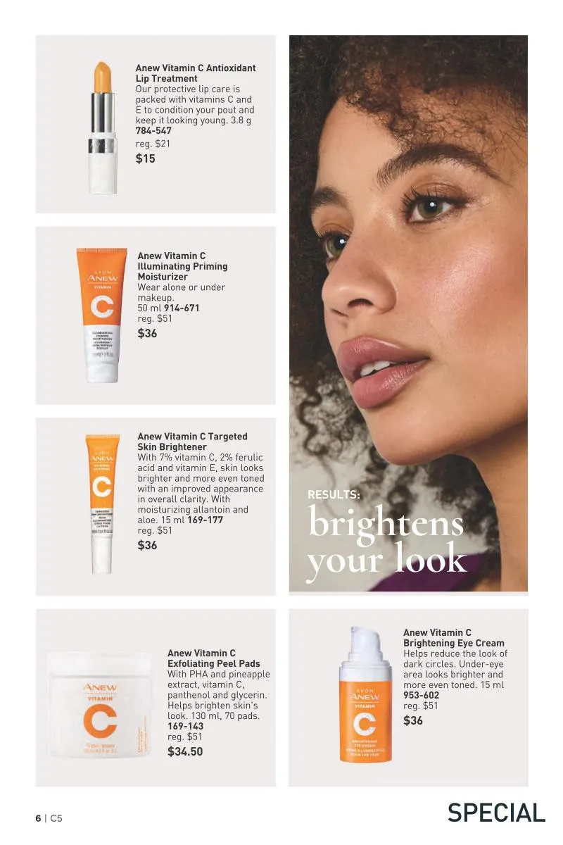 No skincare collection is complete without a good dose of vitamin C, and Avon’s Anew Vitamin C line shines brightly in this brochure. Known for energizing dull skin and restoring natural glow, this range is an easy addition to any skincare routine.
