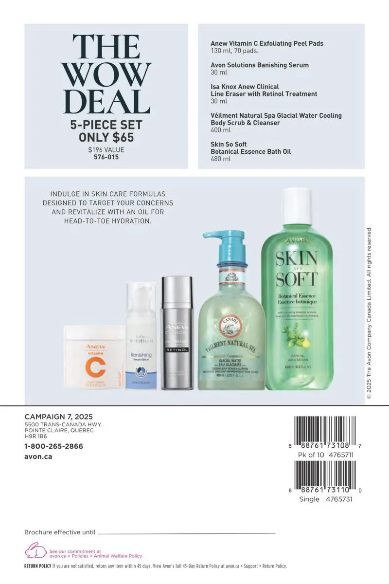 The Avon brochure Canada campaign 7 2026 reflects the brand’s holistic vision of beauty that goes beyond aesthetics. These pages emphasize results-driven solutions, but also comfort, luxury, and the daily ritual of self-love. Each product is crafted to meet the diverse skincare needs of Canadians, from advanced anti-aging regimens to nourishing hydration solutions.