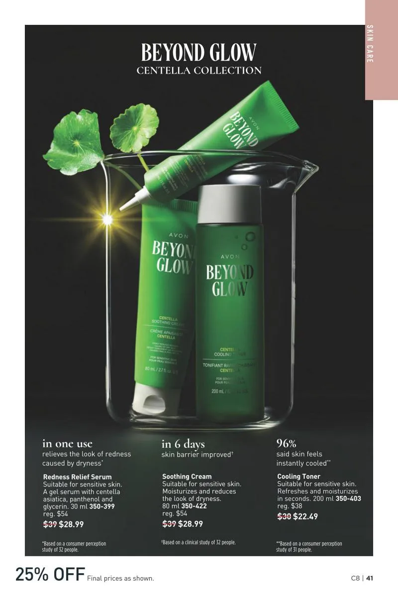 The Avon brochure Canada campaign 8 2026 shines with its holistic approach to skincare that draws on nature’s gentlest ingredients. Among the highlights is the Beyond Glow Centella Collection, a range tailored for those with sensitive or easily irritated skin. The Centella Redness Relief Serum, featuring centella asiatica, panthenol, and glycerin, is clinically shown to relieve visible redness after just one use. This calming gel serum not only soothes but also works to restore skin balance and comfort. Paired with the Centella Cooling Toner and Soothing Cream, this routine is a powerful solution for maintaining a healthy skin barrier. In a matter of days, users report less dryness and a refreshed complexion.